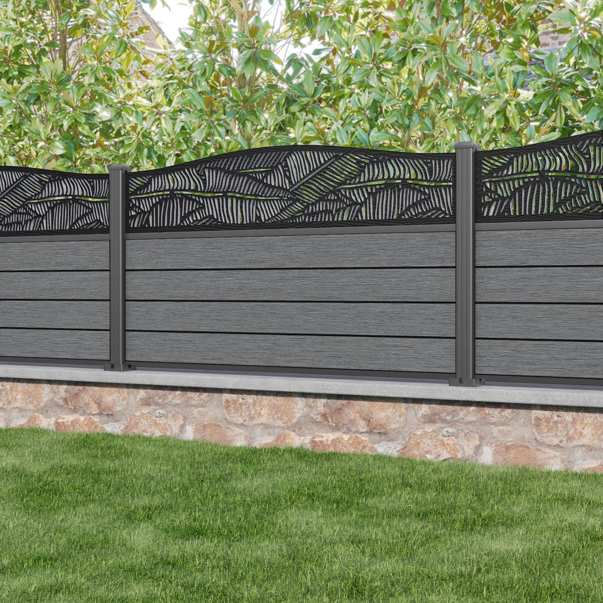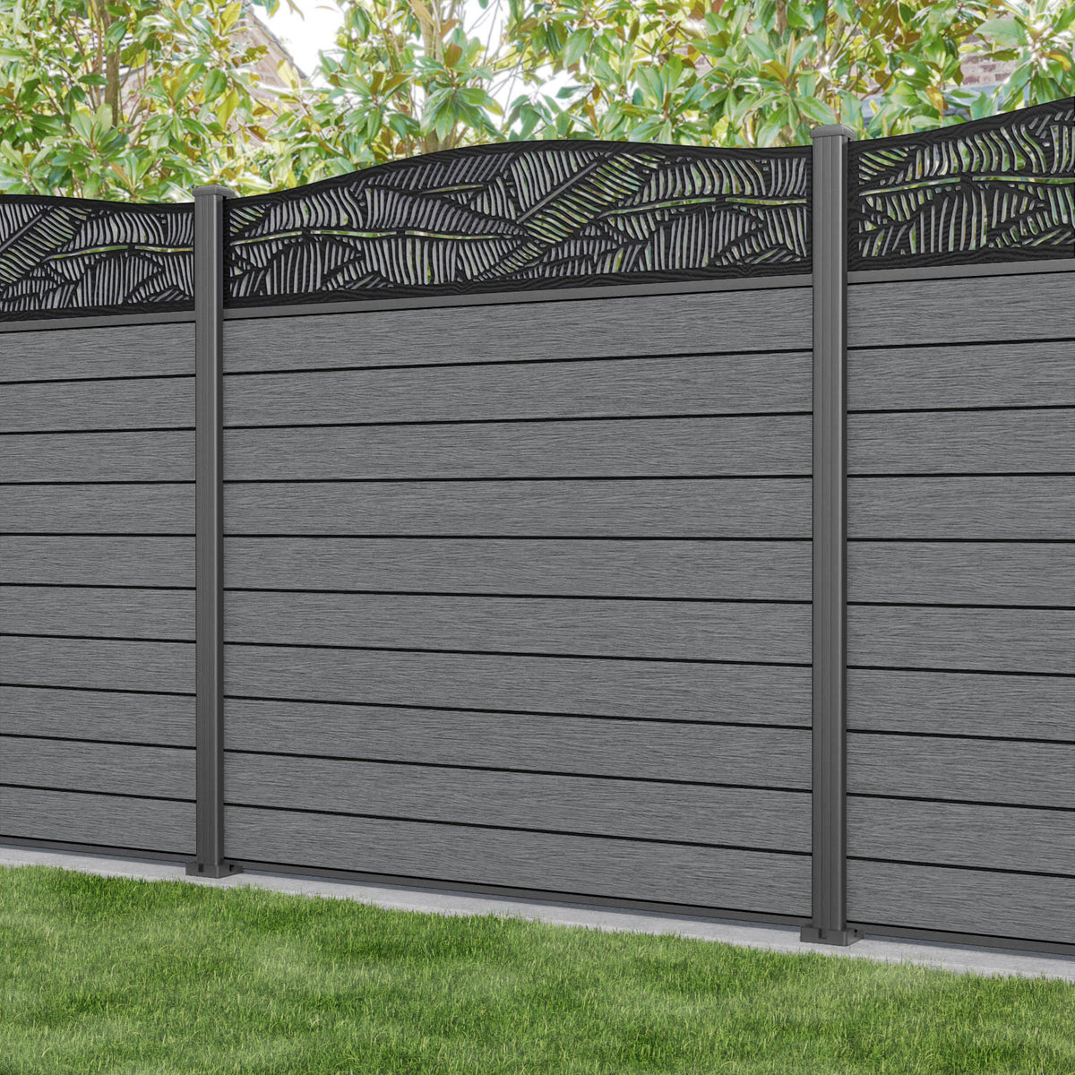 Fusion Feather Curved Top Fence Panel Mid Grey - with our aluminium posts