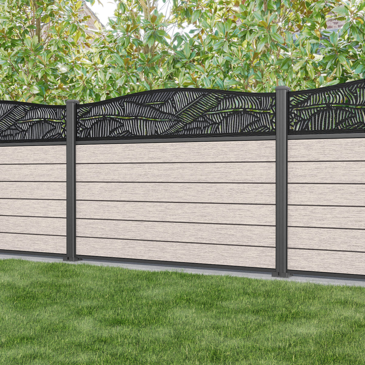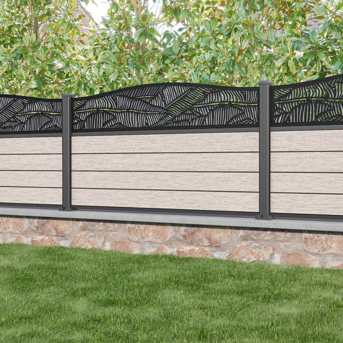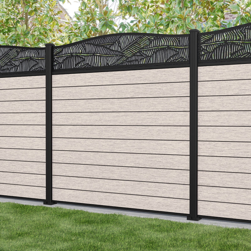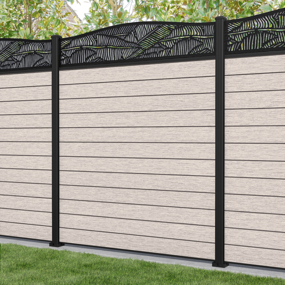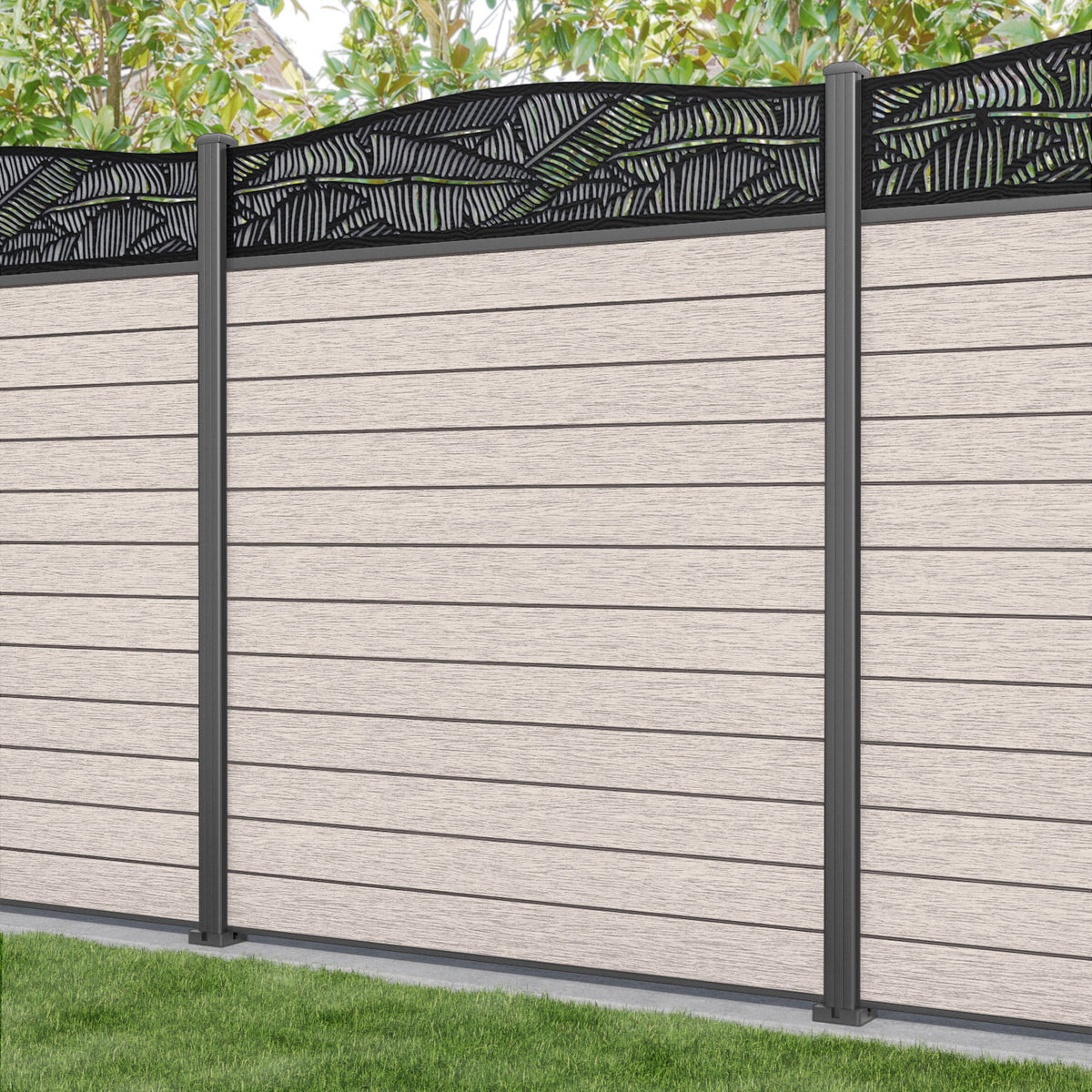 Fusion Feather Curved Top Fence Panel Mid Stone - with our aluminium posts