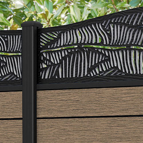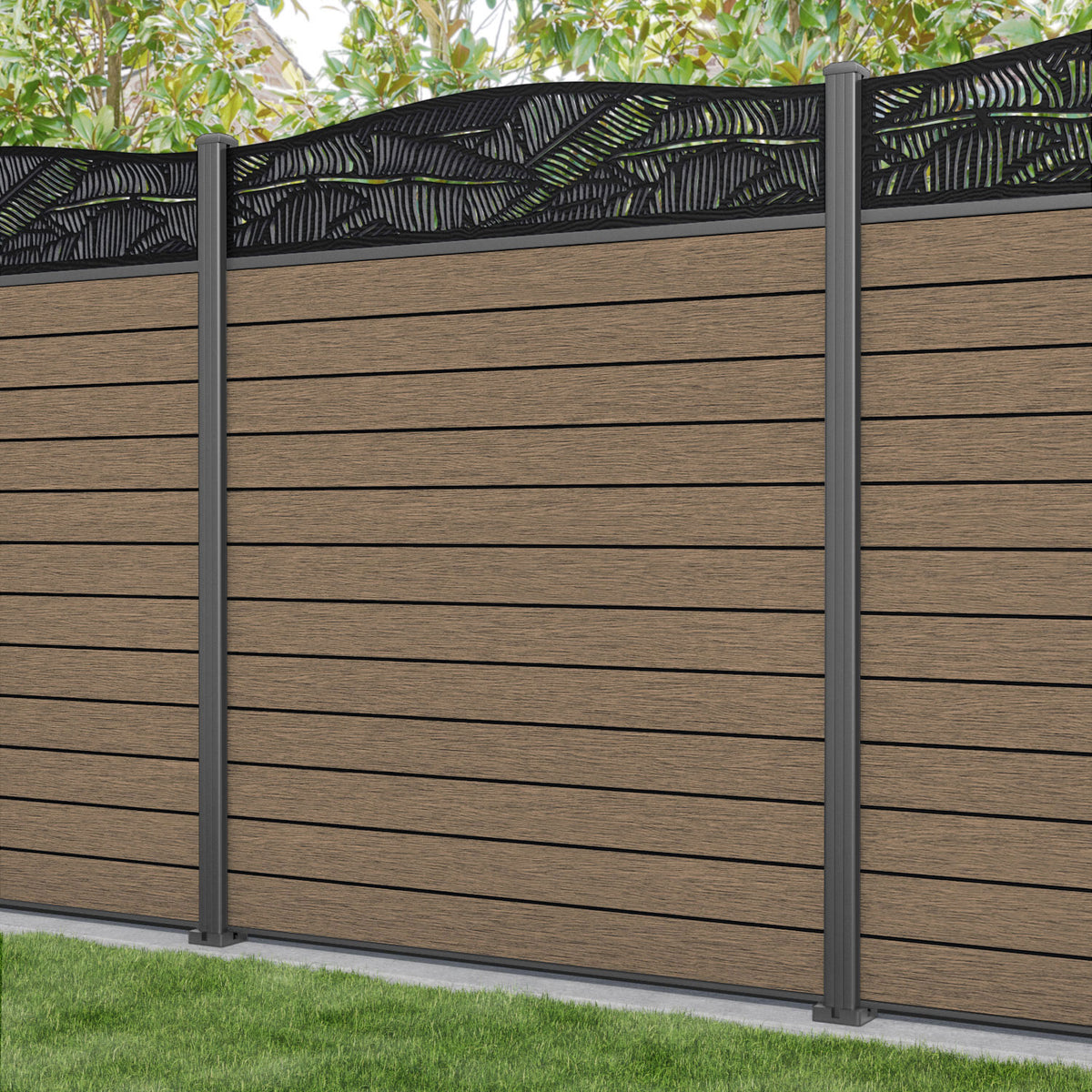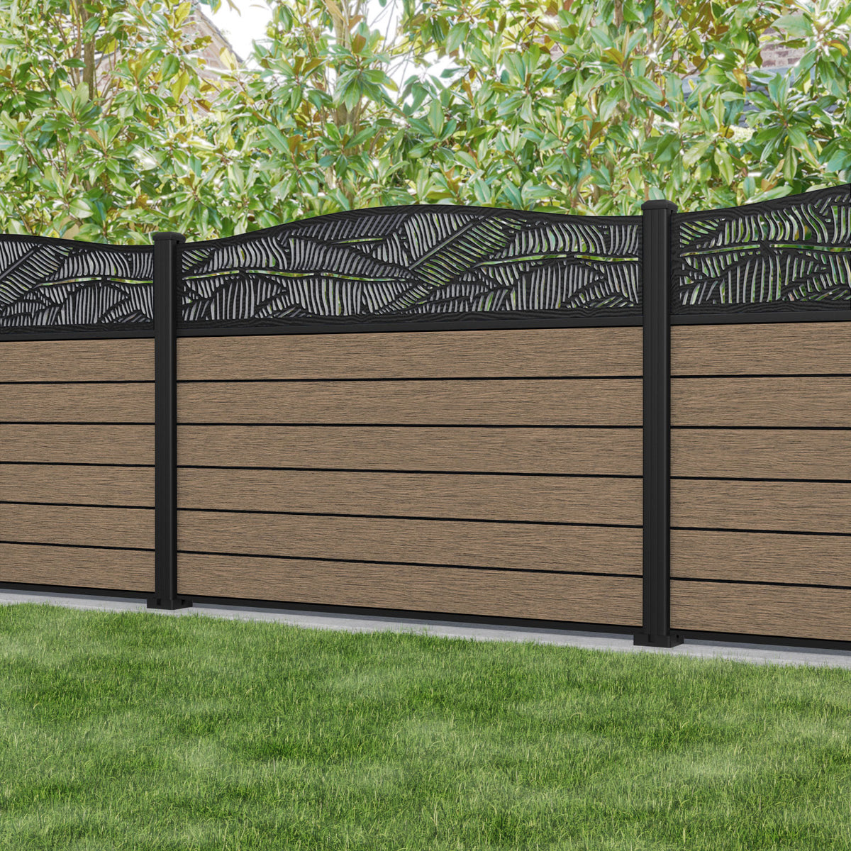 Fusion Feather Curved Top Fence Panel Teak - with our aluminium posts