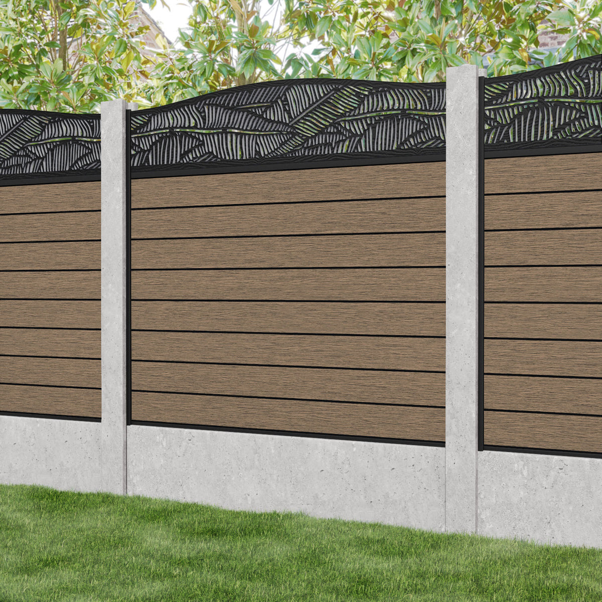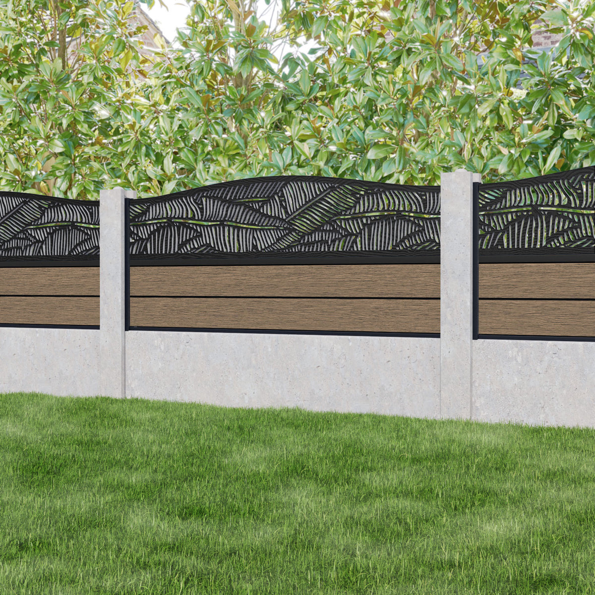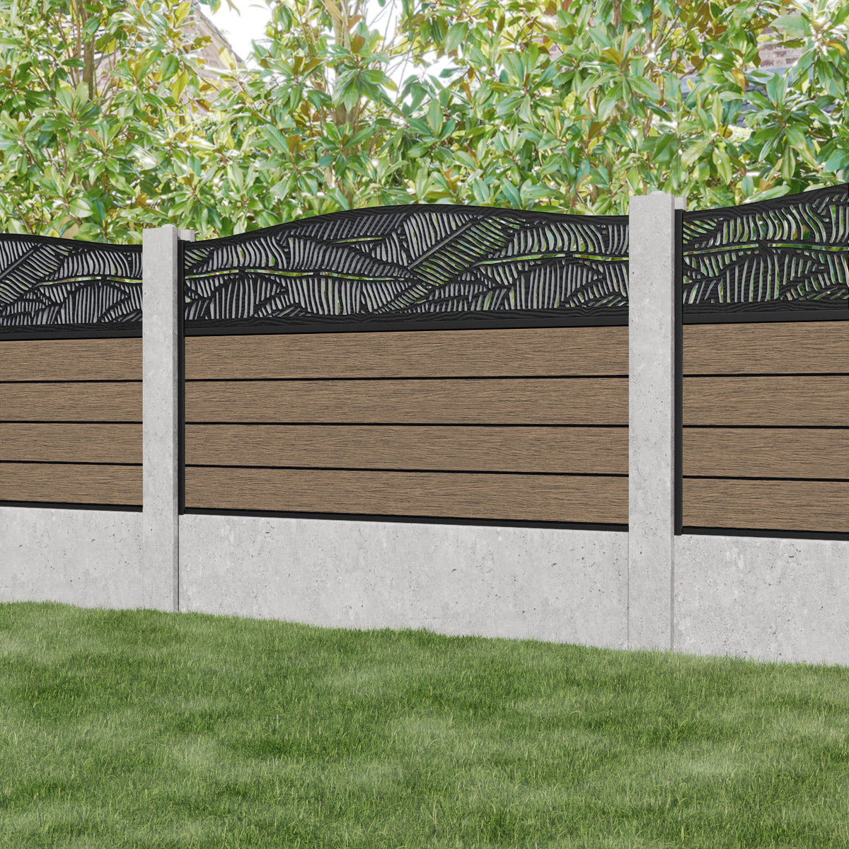 Fusion Feather Curved Top Fence Panel Teak - for existing concrete posts