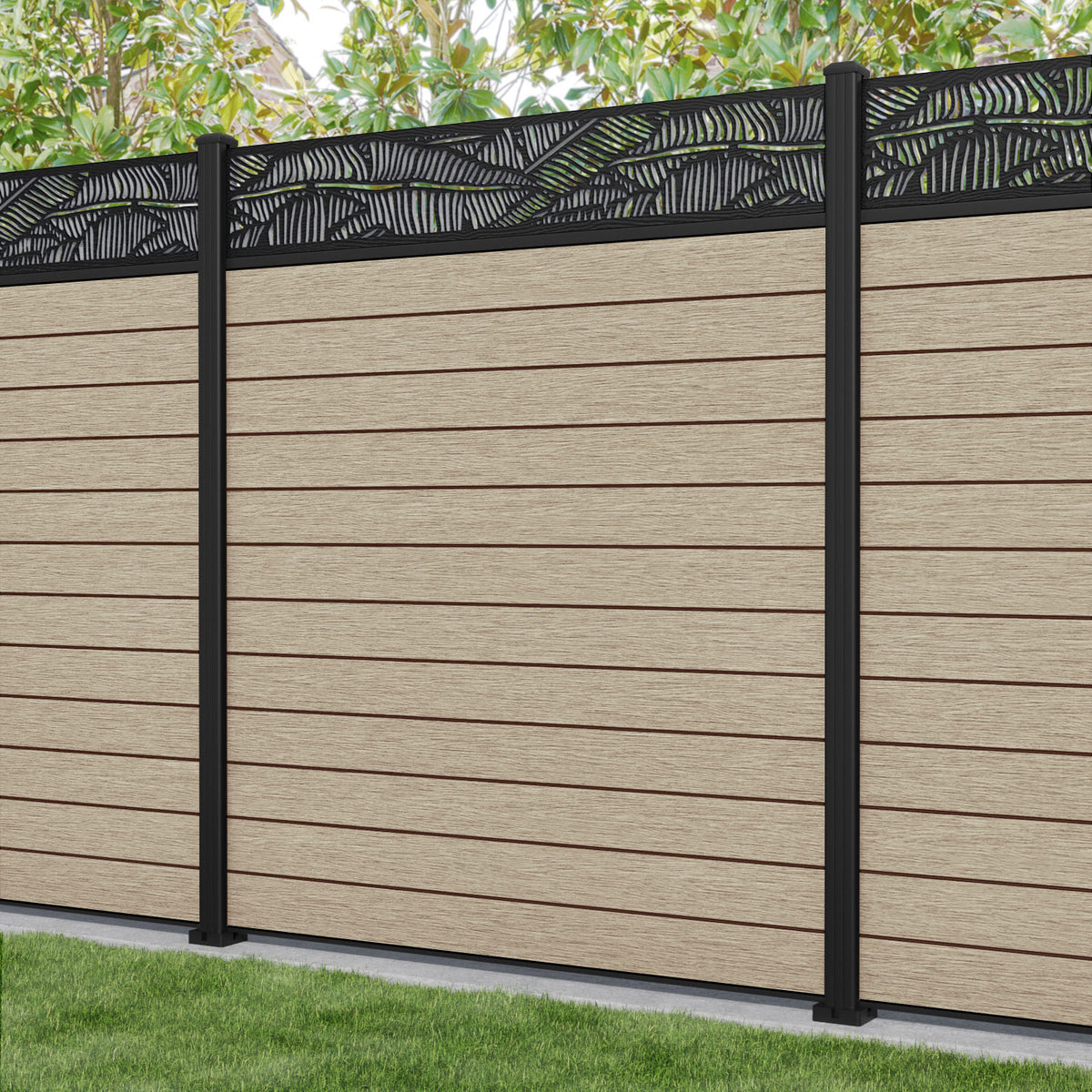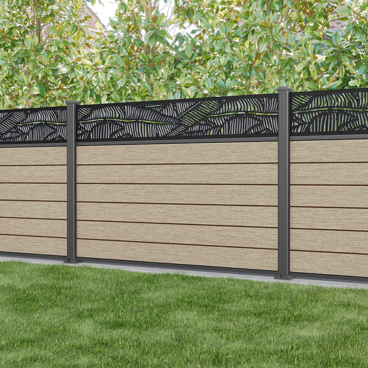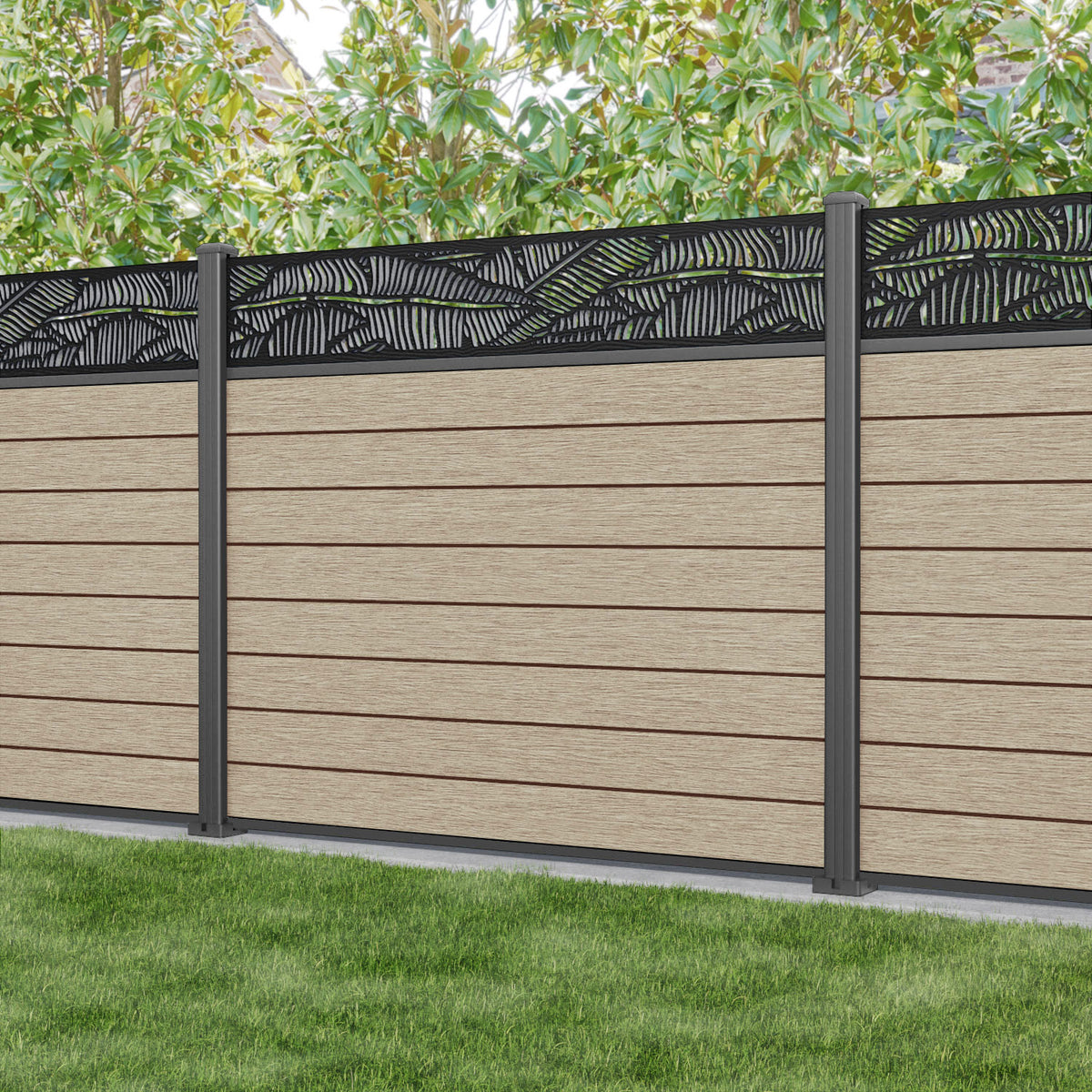 Fusion Feather Fence Panel Light Oak - with our aluminium posts