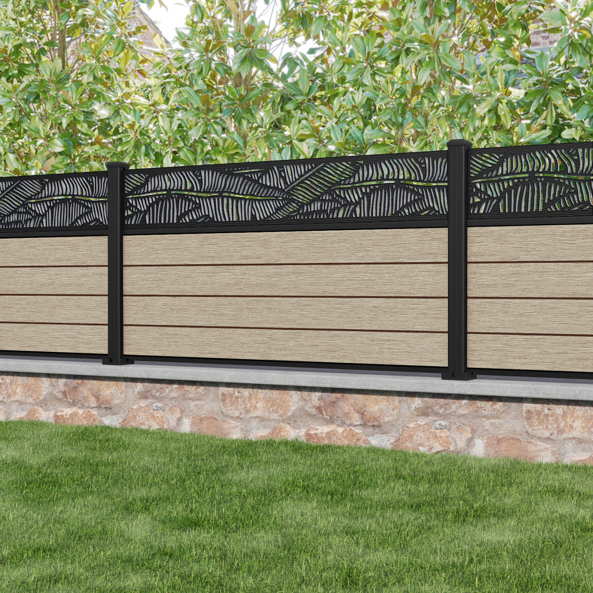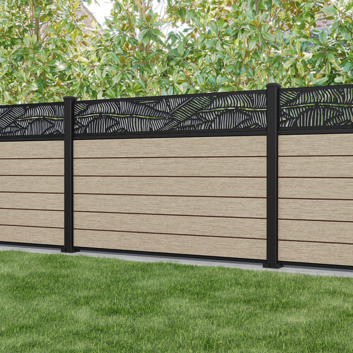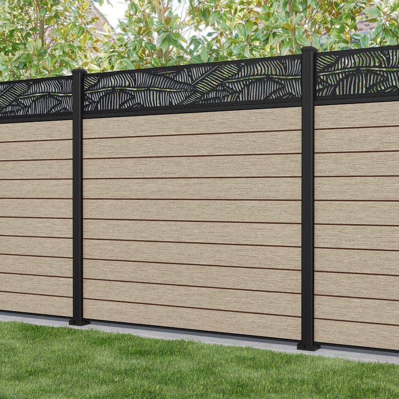 Fusion Feather Fence Panel Light Oak - with our aluminium posts