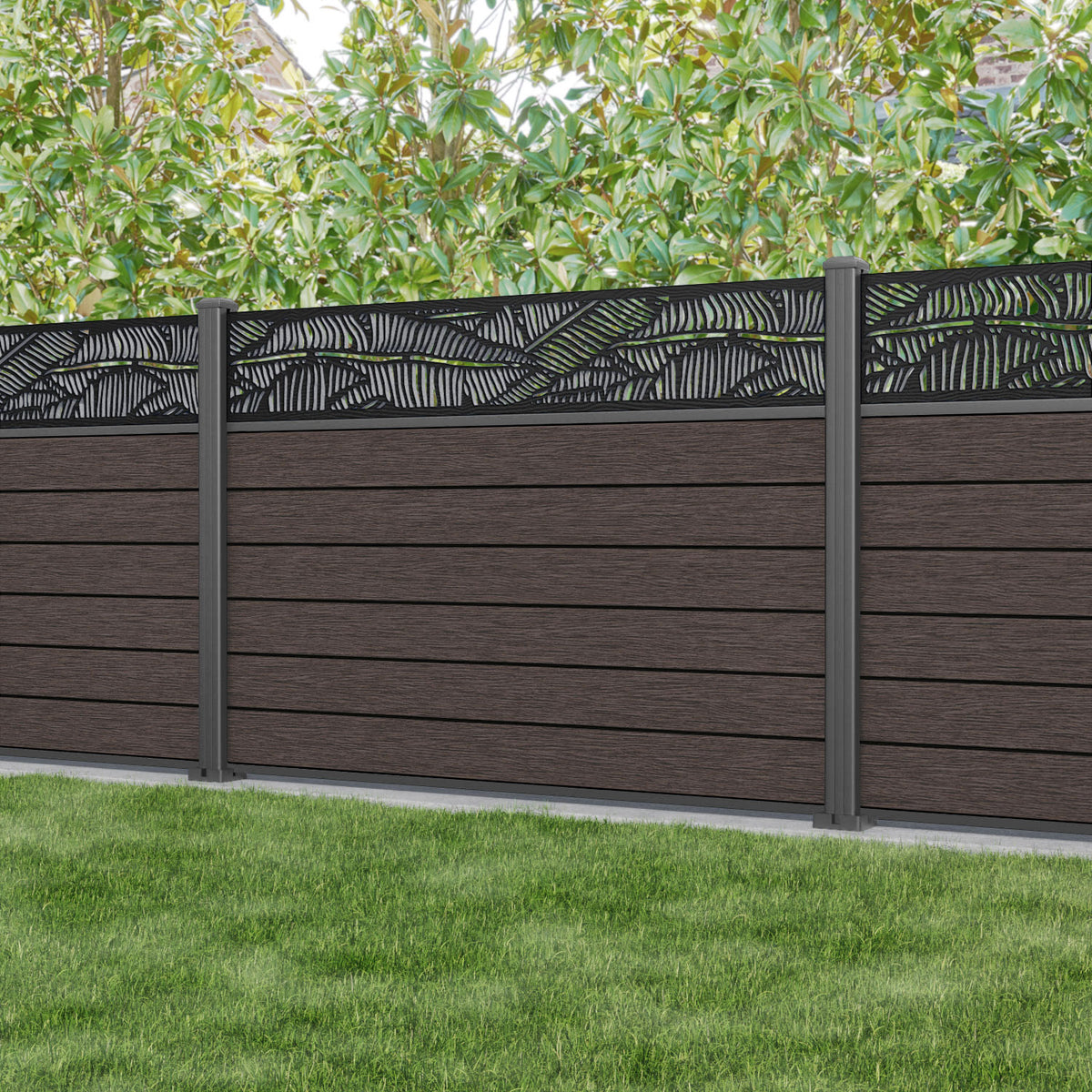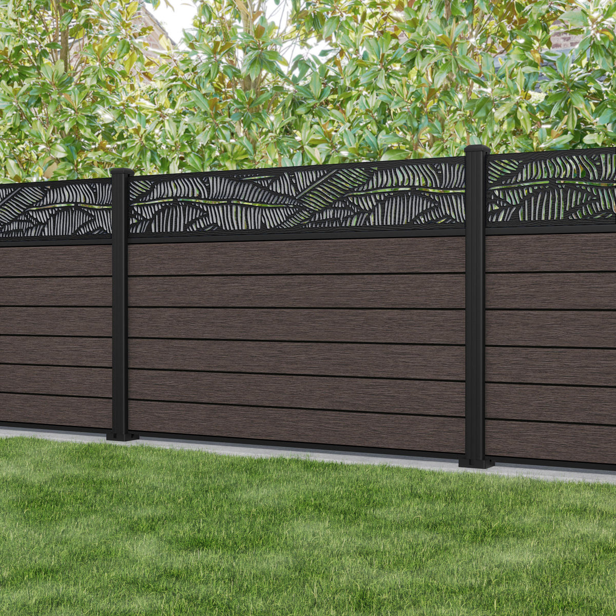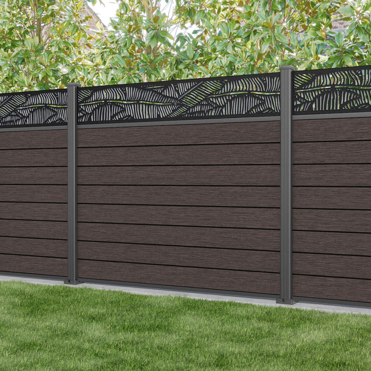 Fusion Feather Fence Panel Mid Brown - with our aluminium posts