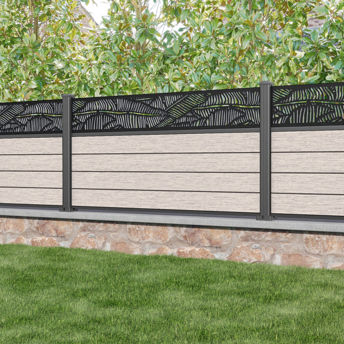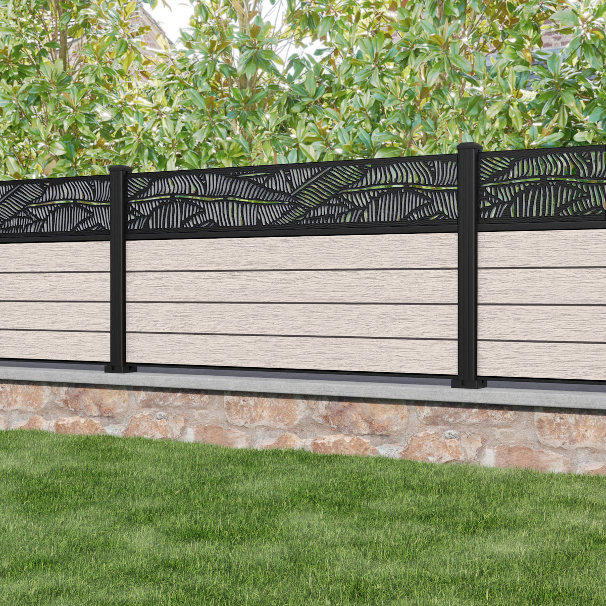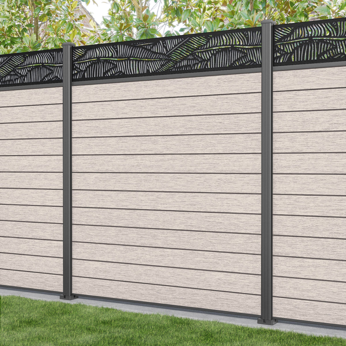 Fusion Feather Fence Panel Mid Stone - with our aluminium posts