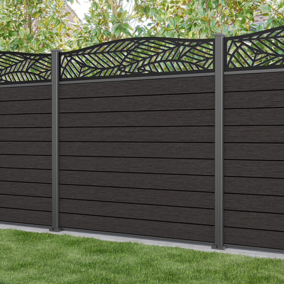 Fusion Habitat Curved Top Fence Panel Dark Oak - with our aluminium posts