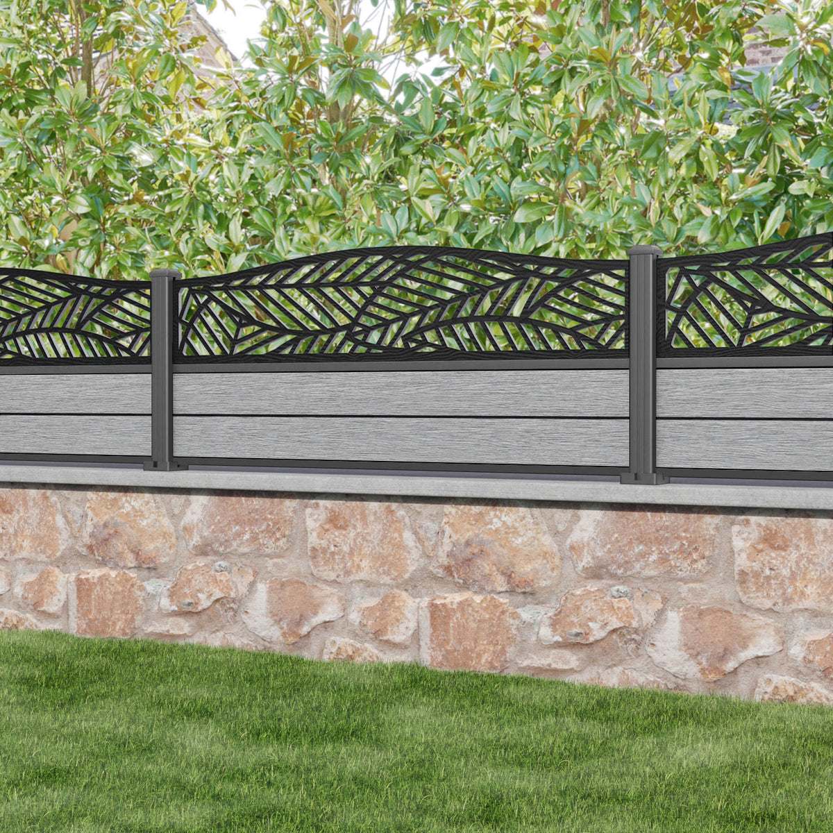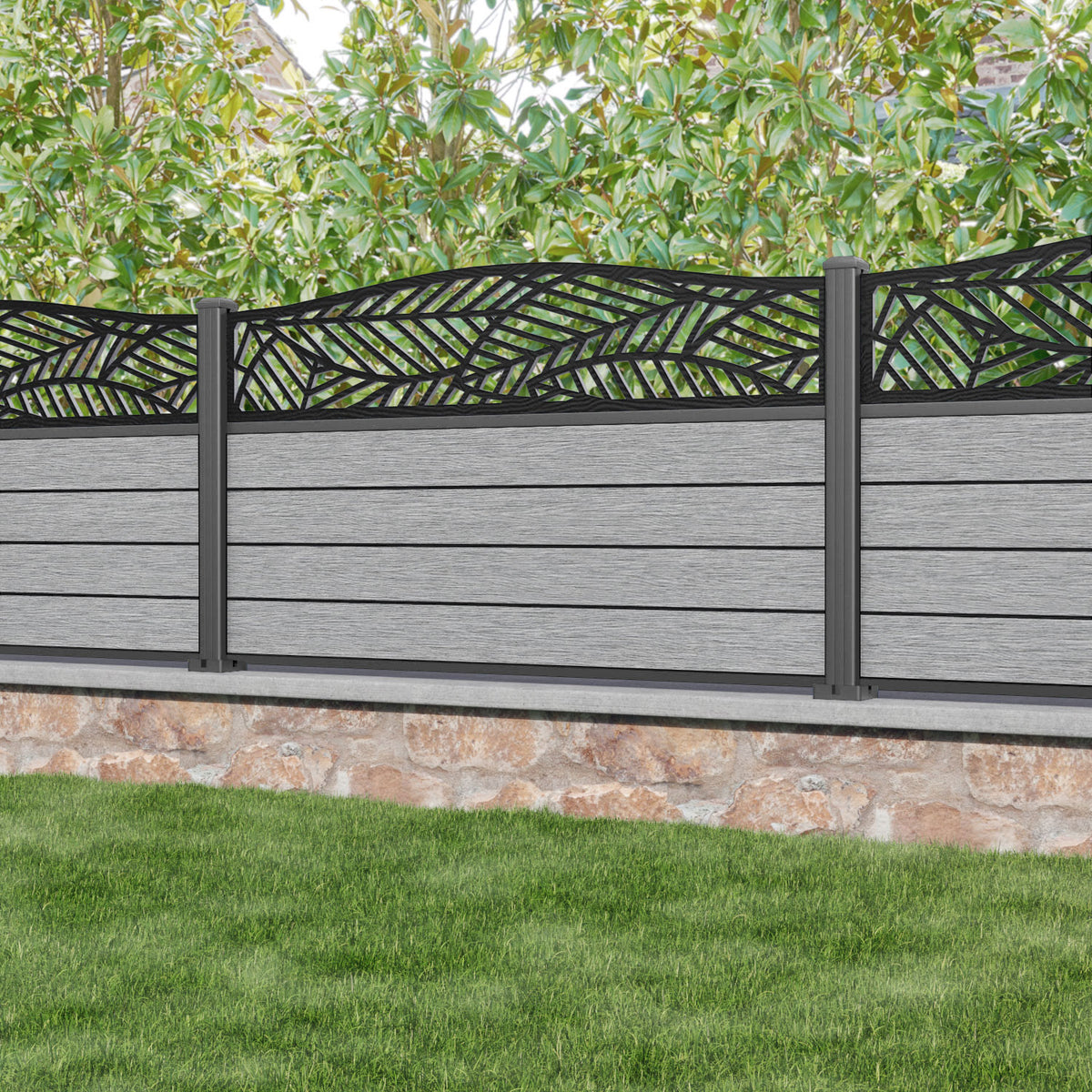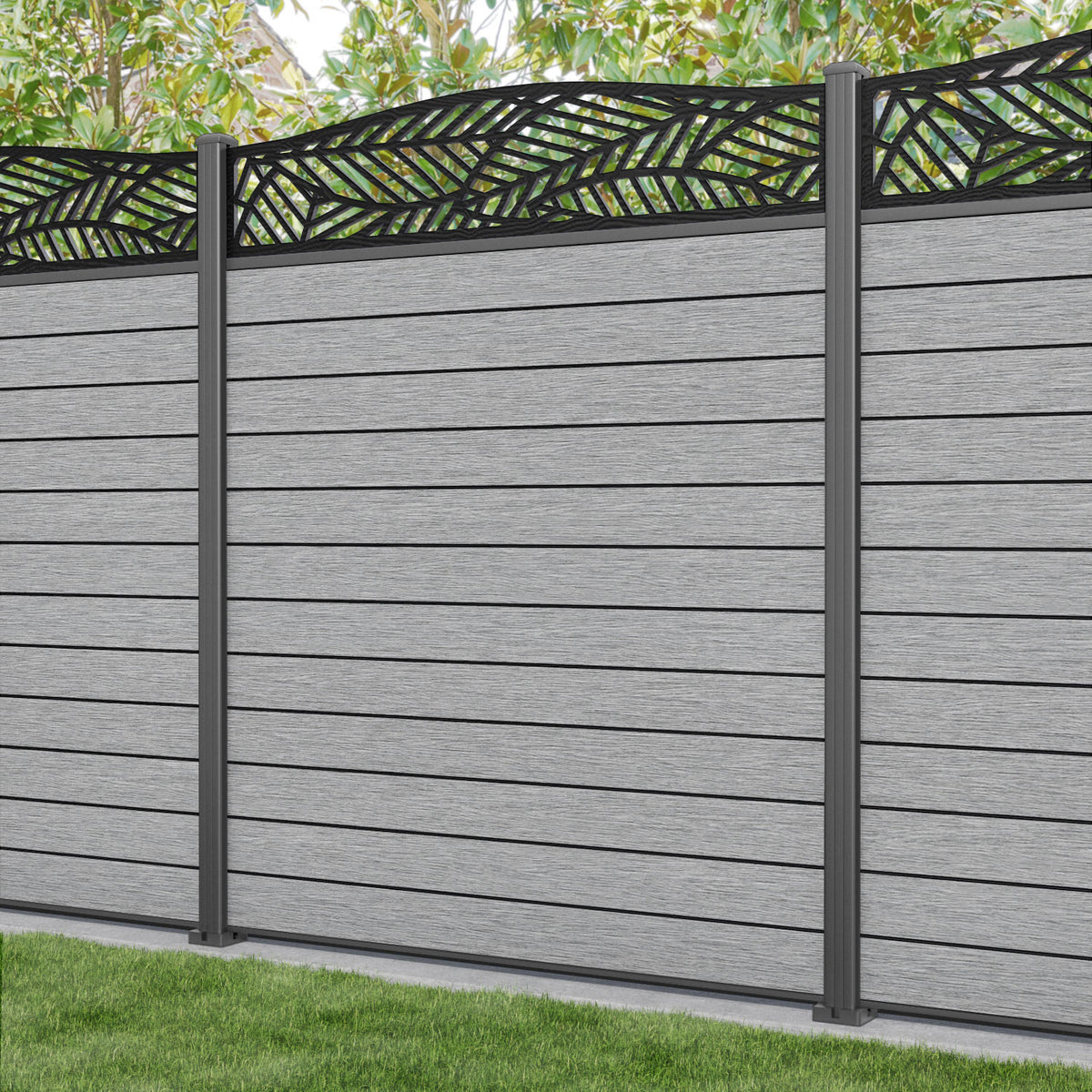 Fusion Habitat Curved Top Fence Panel Light Grey - with our aluminium posts