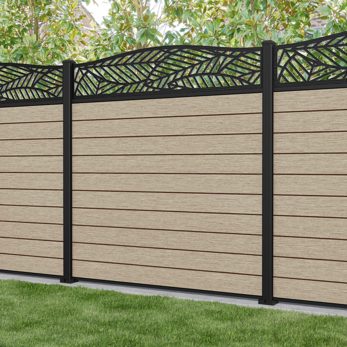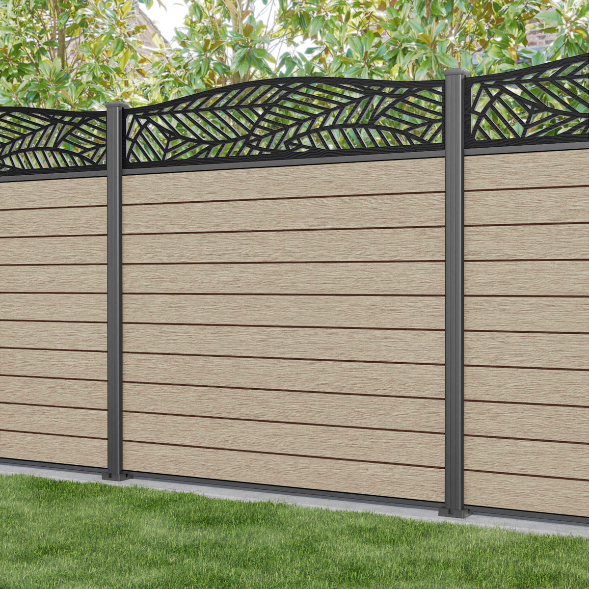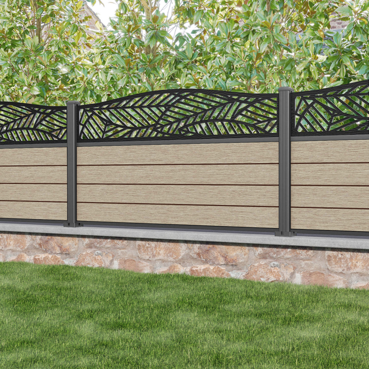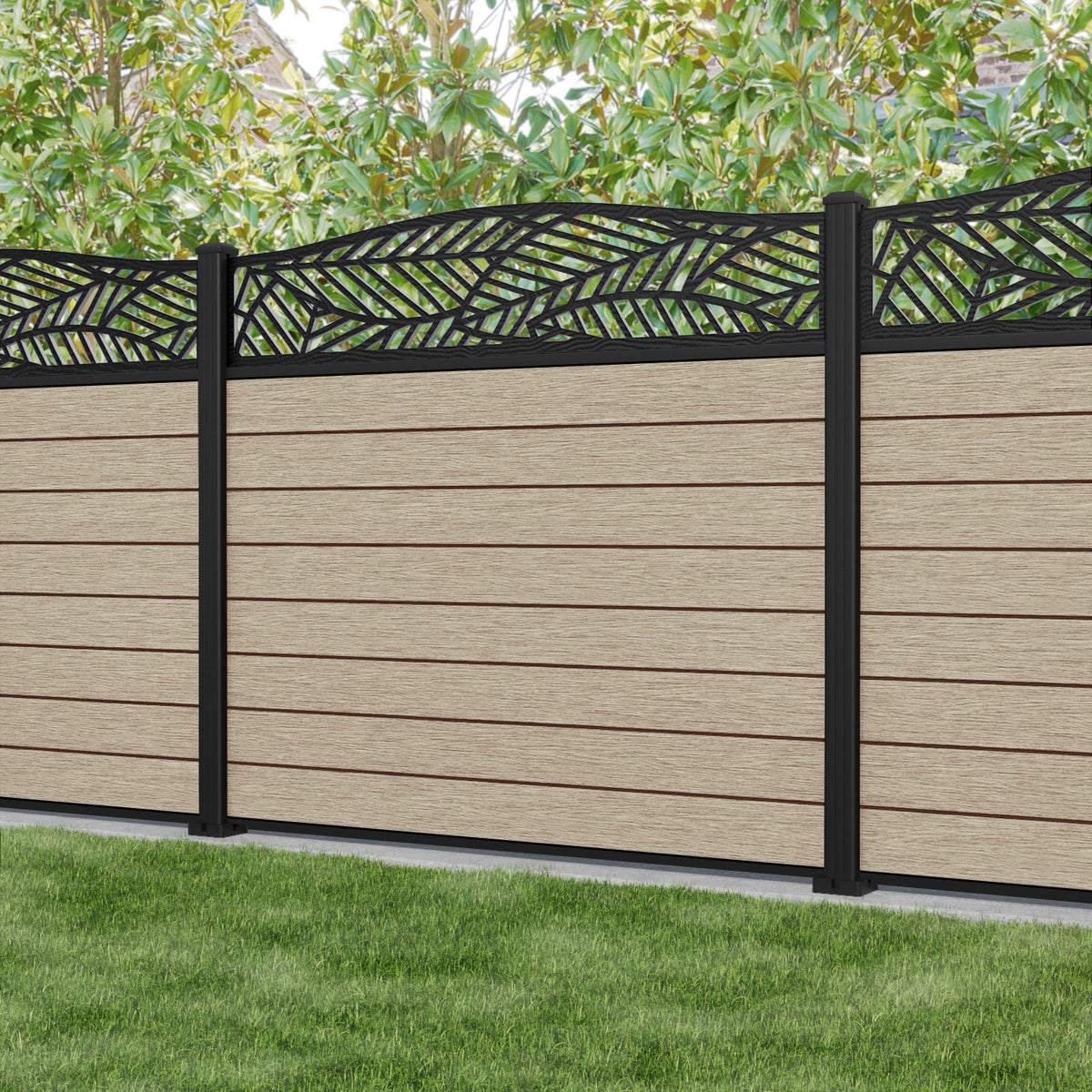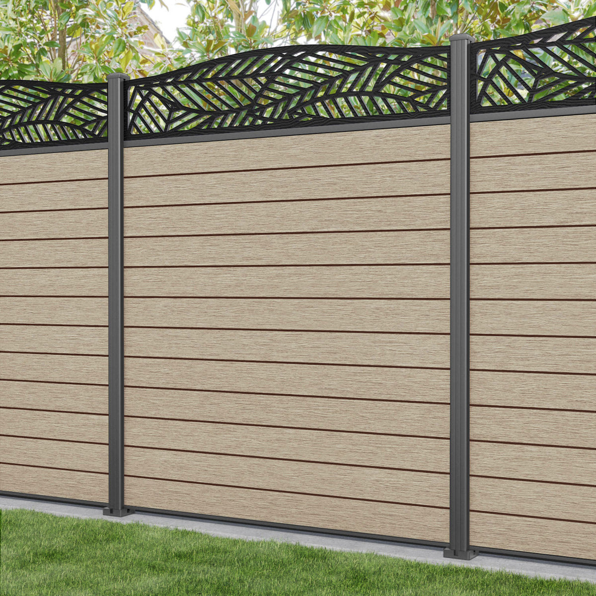 Fusion Habitat Curved Top Fence Panel Light Oak - with our aluminium posts