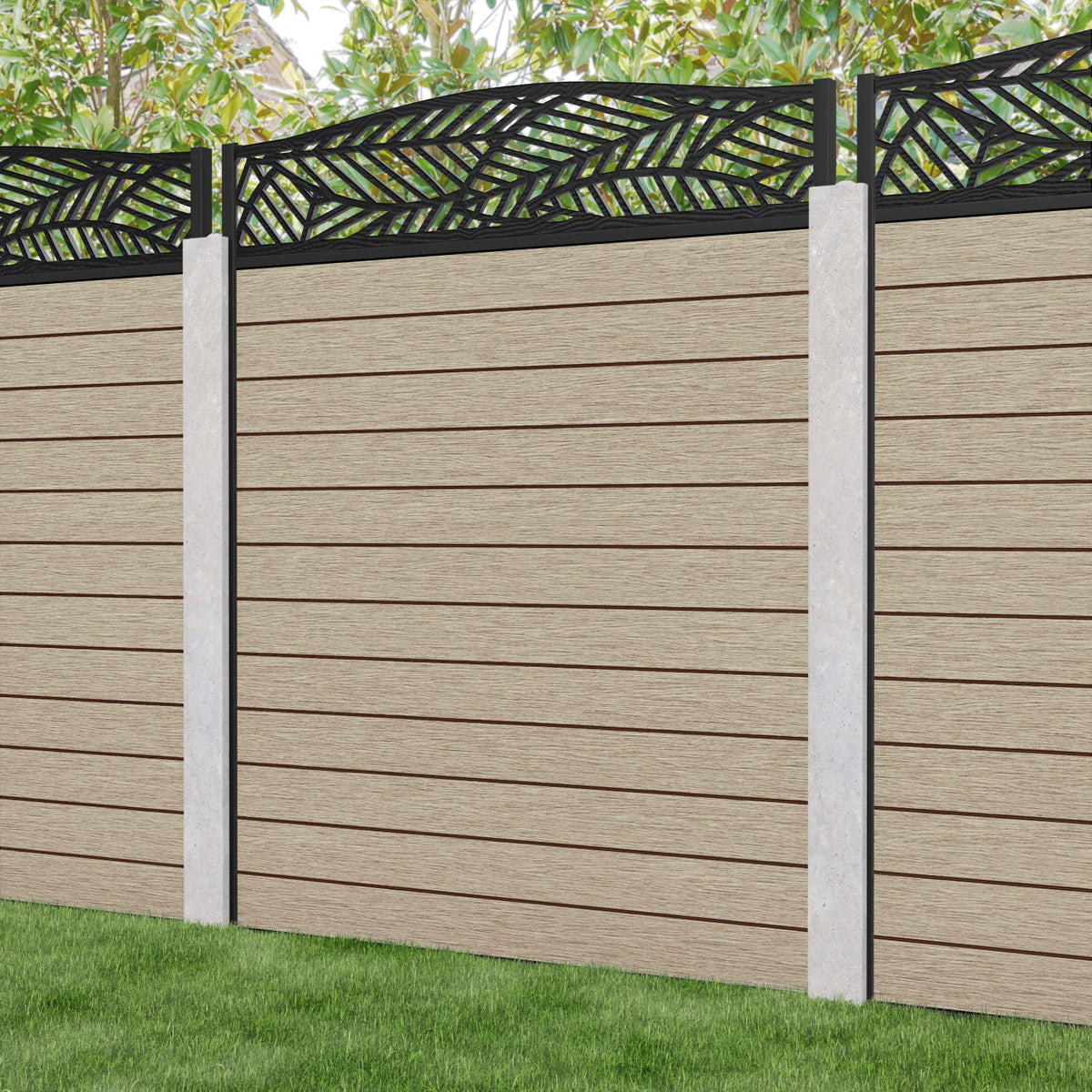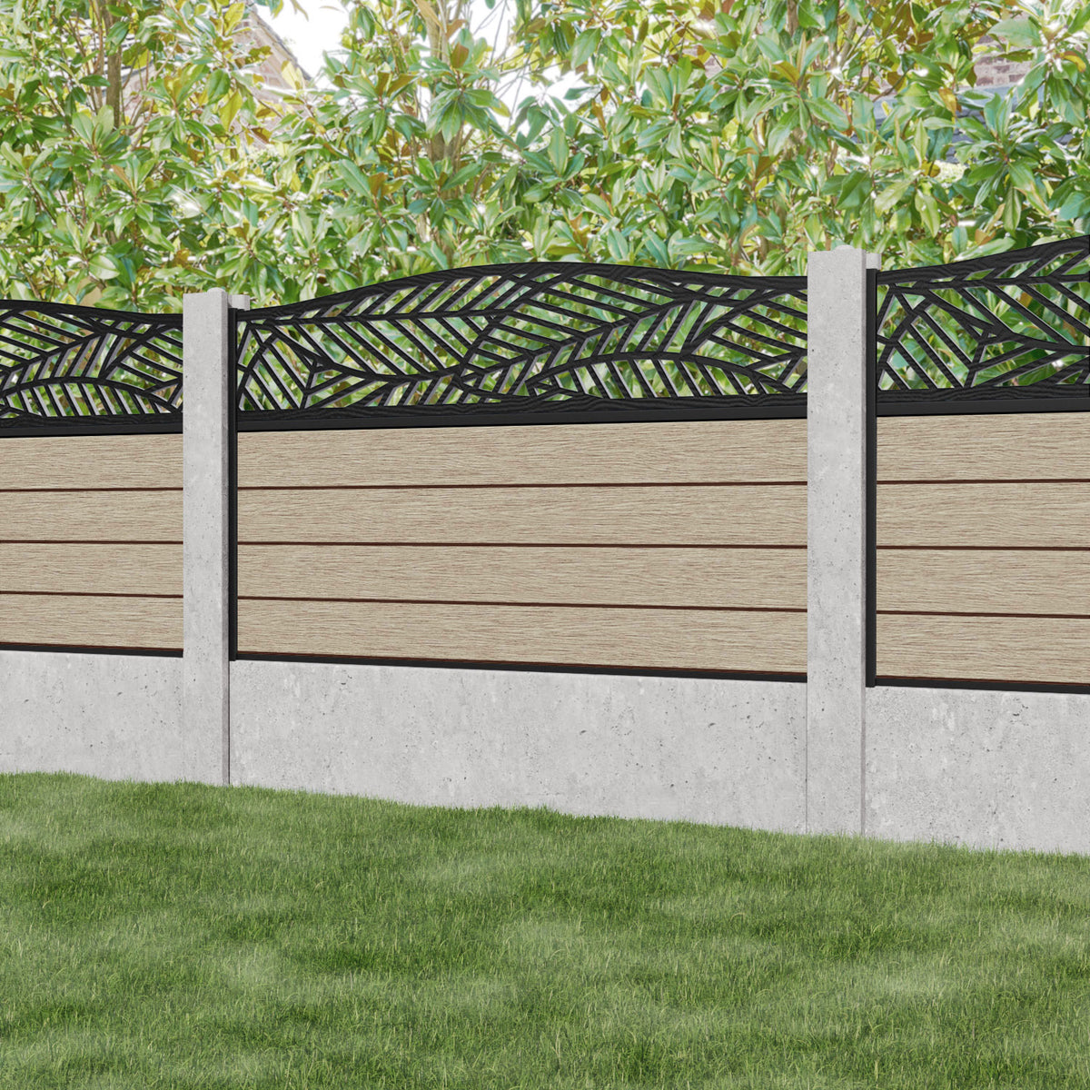 Fusion Habitat Curved Top Fence Panel Light Oak - for existing concrete posts