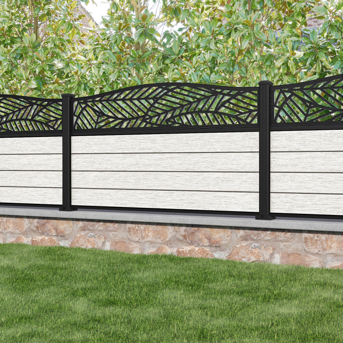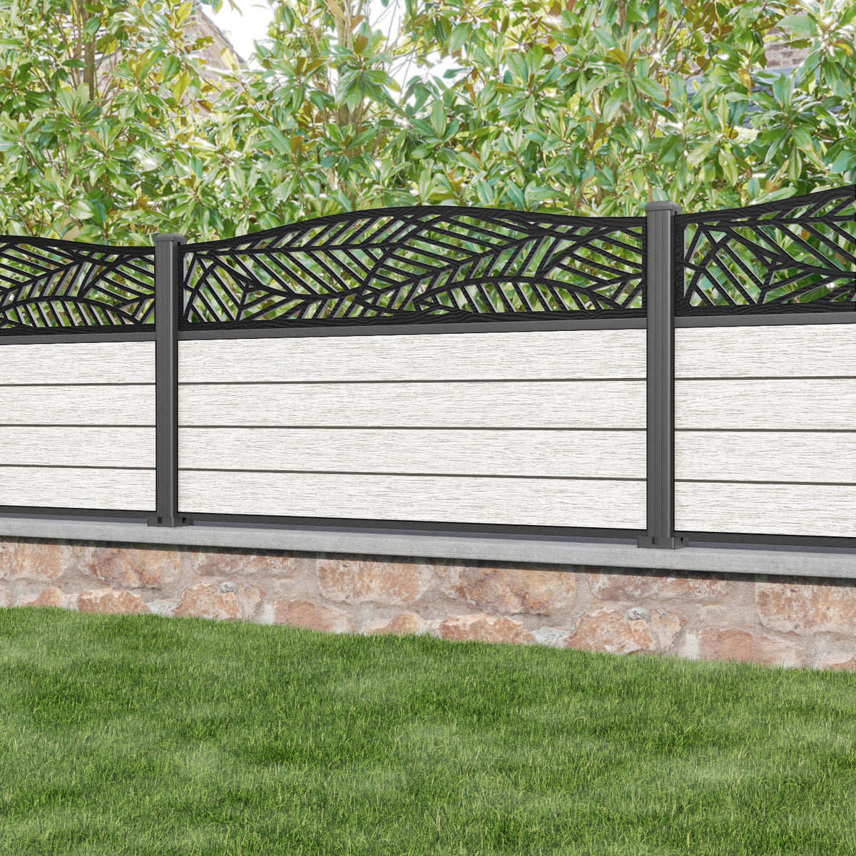 Fusion Habitat Curved Top Fence Panel Light Stone - with our aluminium posts
