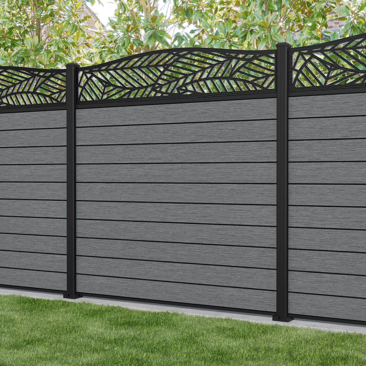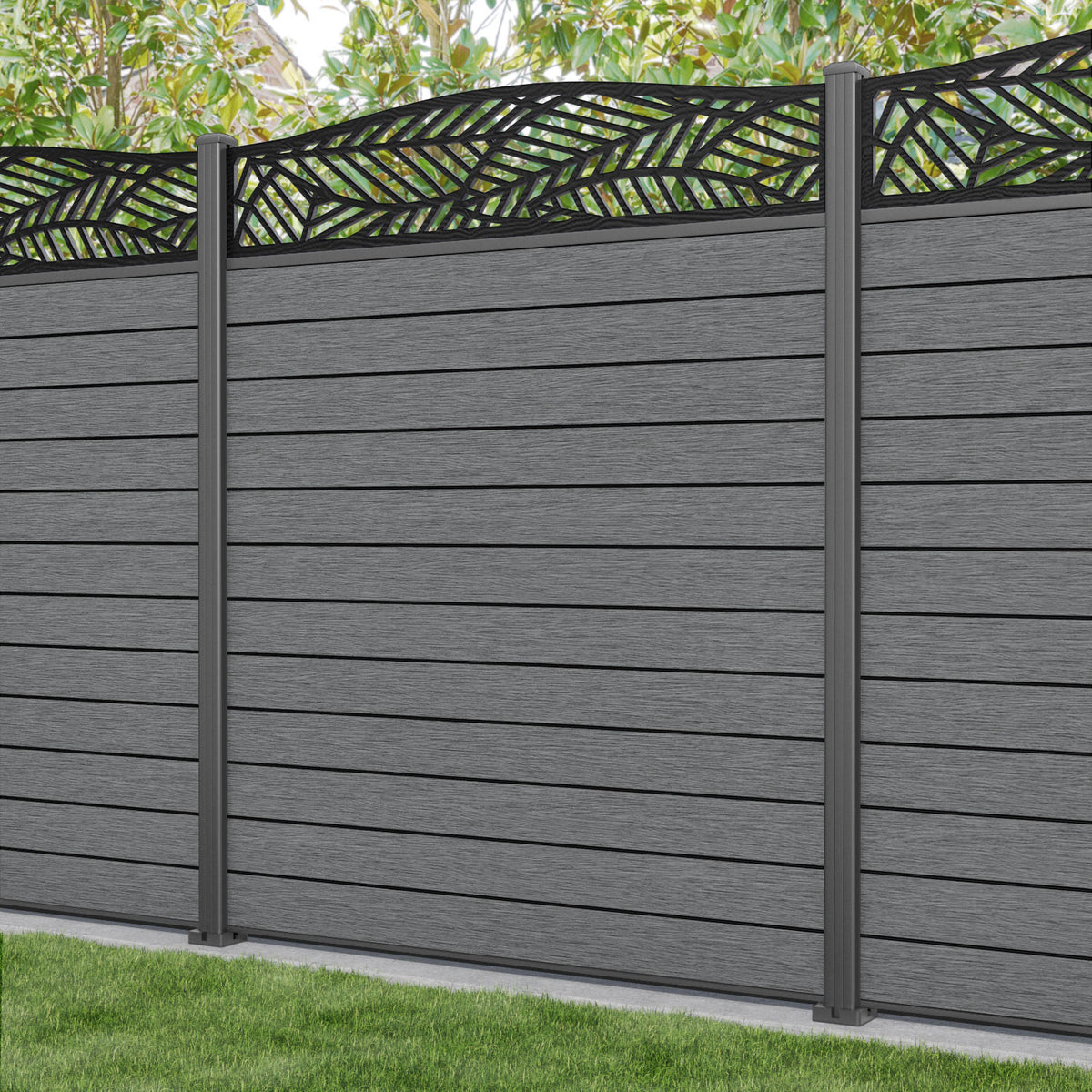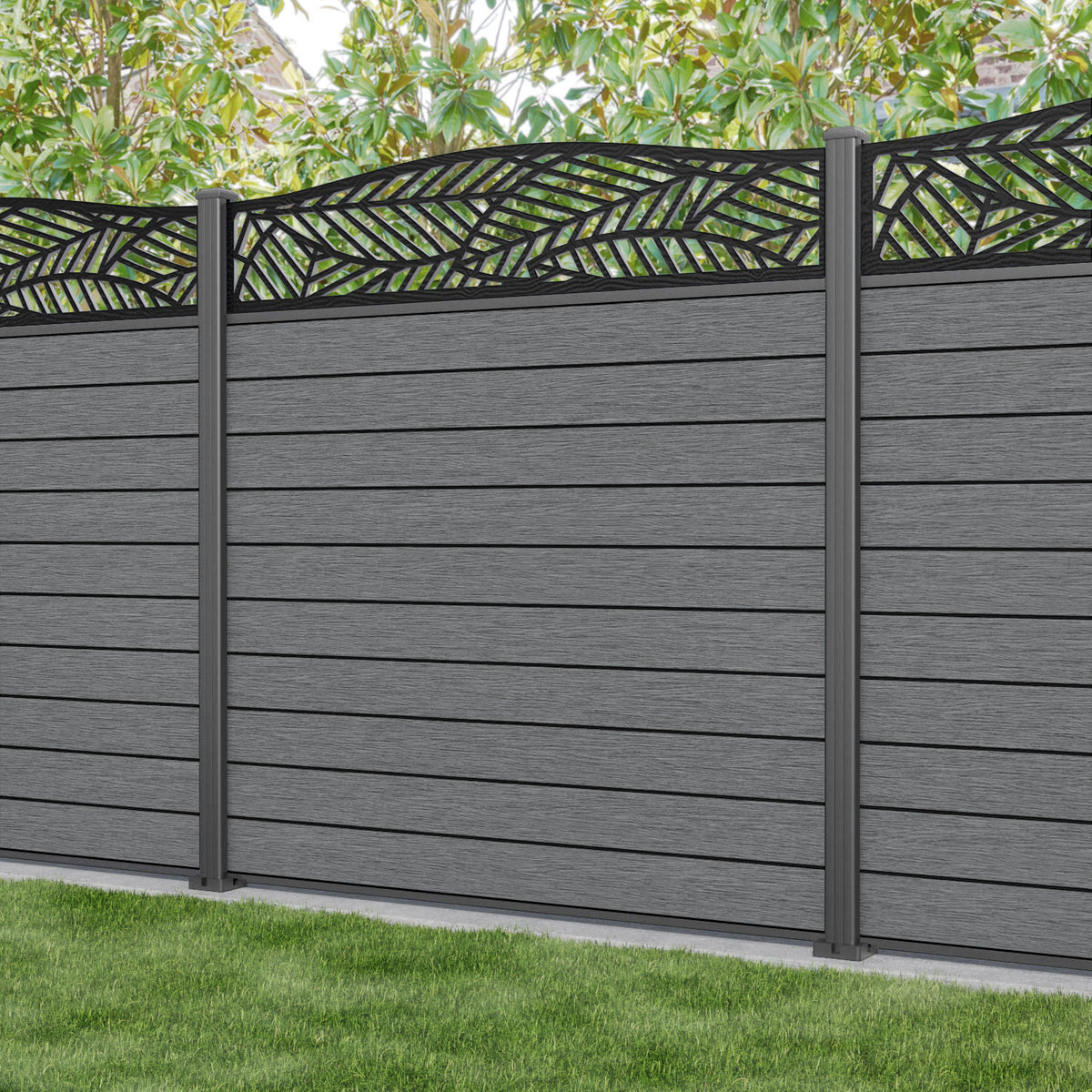 Fusion Habitat Curved Top Fence Panel Mid Grey - with our aluminium posts