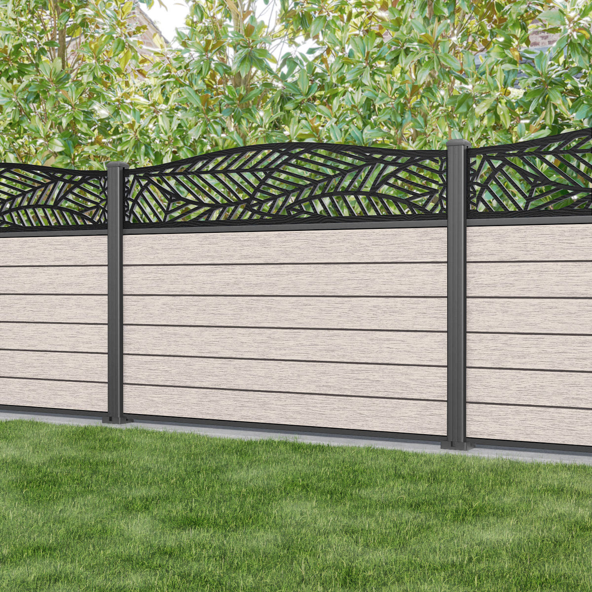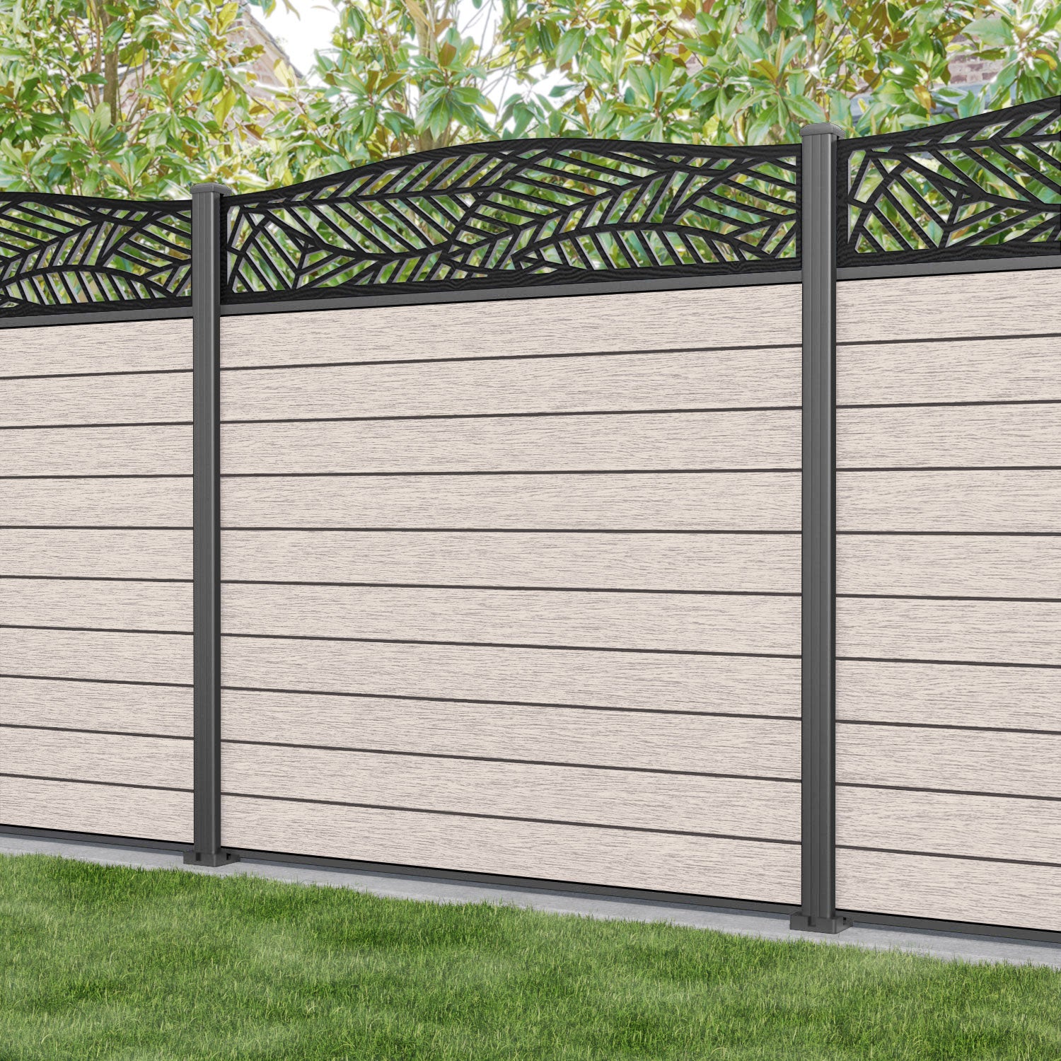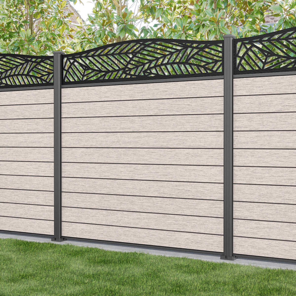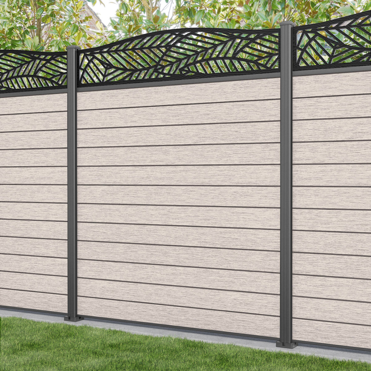Fusion Habitat Curved Top Fence Panel Mid Stone - with our aluminium posts