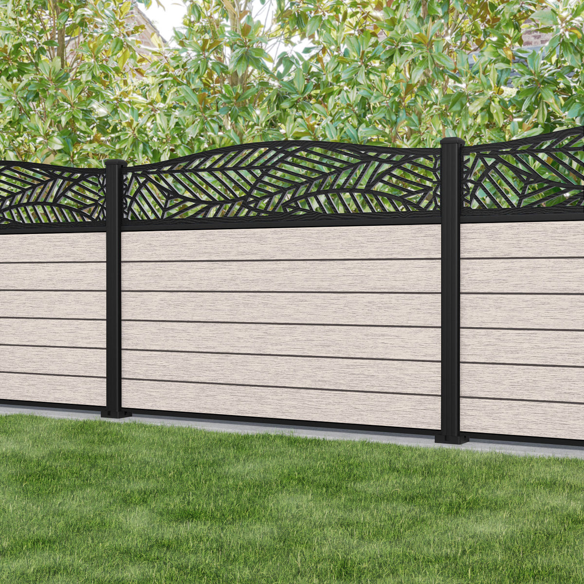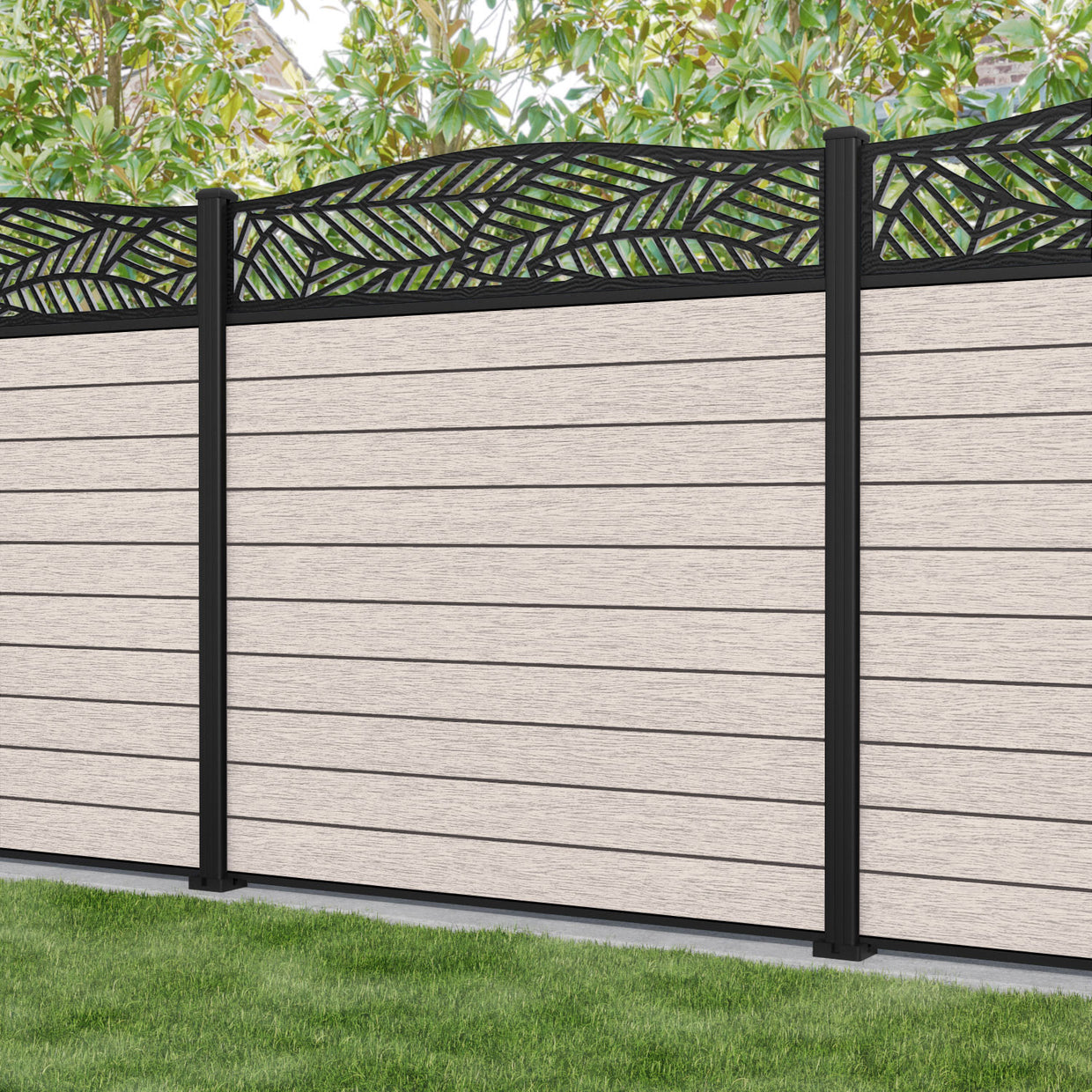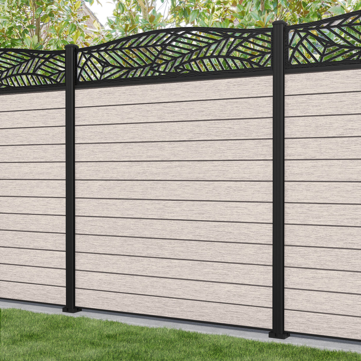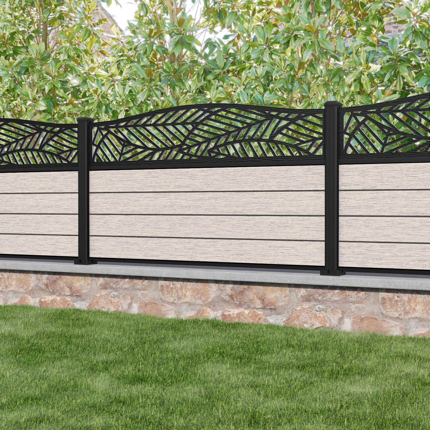 Fusion Habitat Curved Top Fence Panel Mid Stone - with our aluminium posts