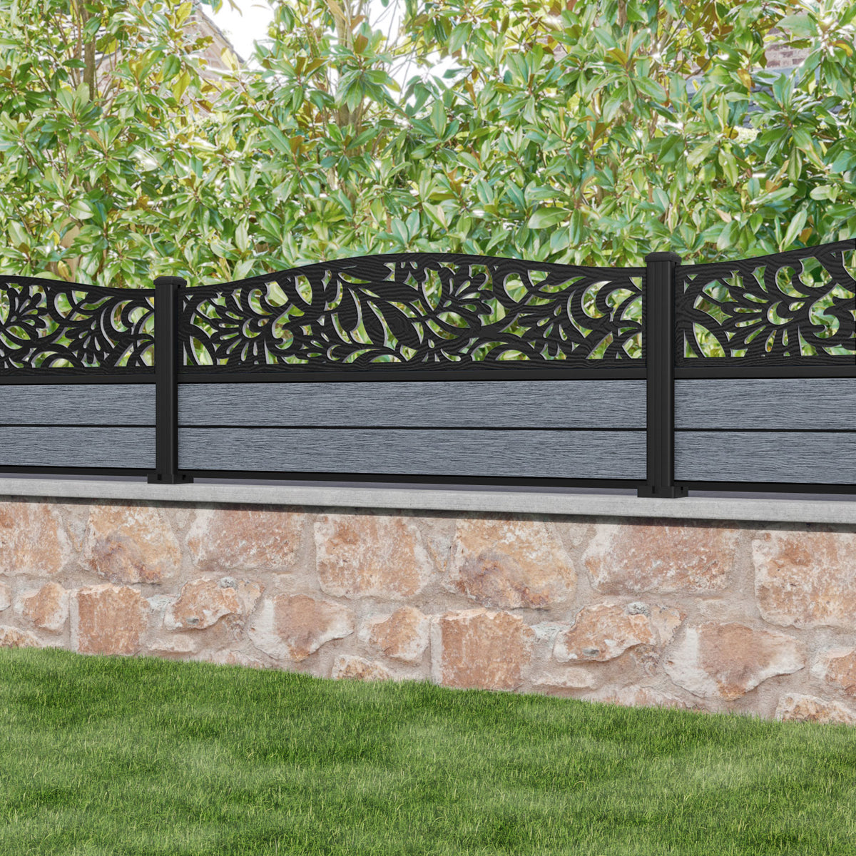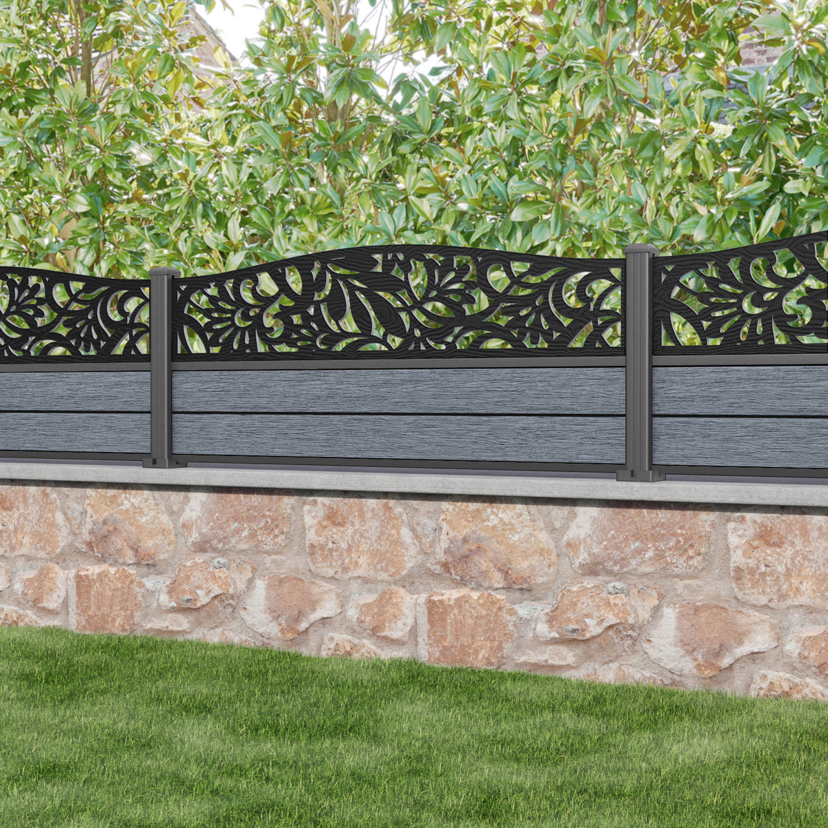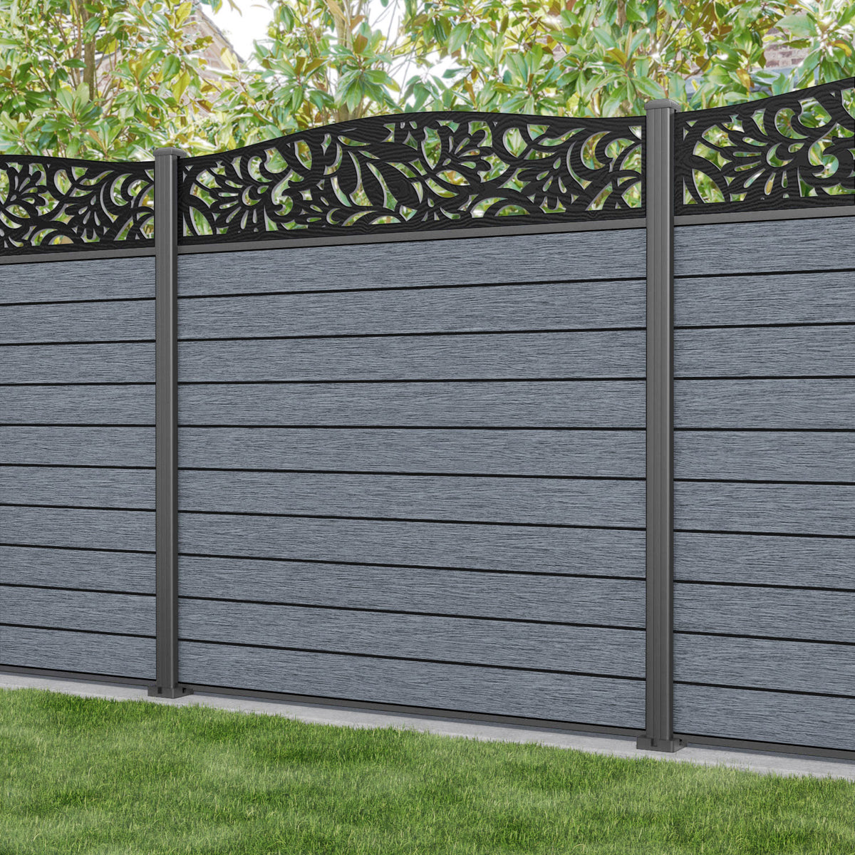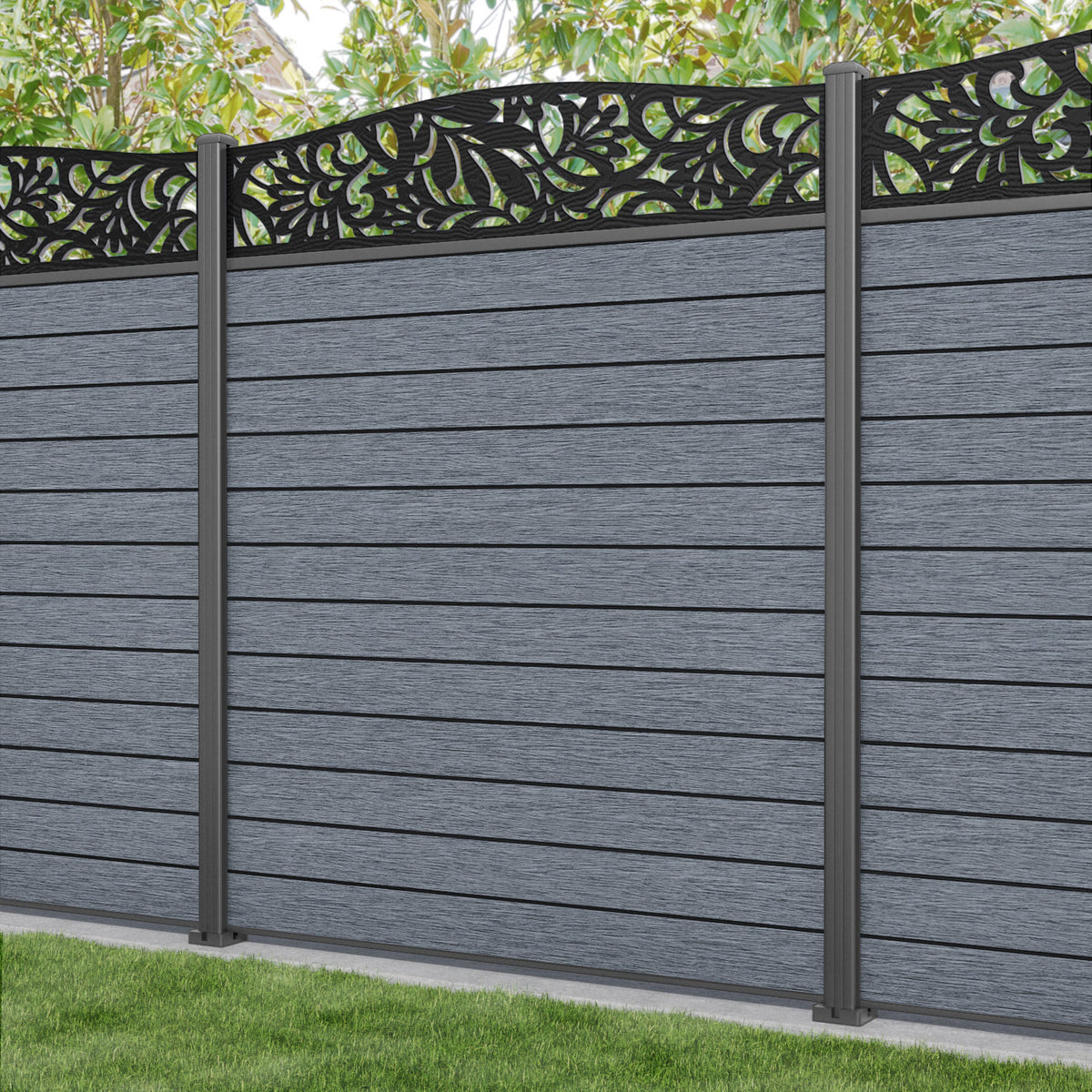 Fusion Heritage Curved Top Fence Panel Anthracite - with our aluminium posts