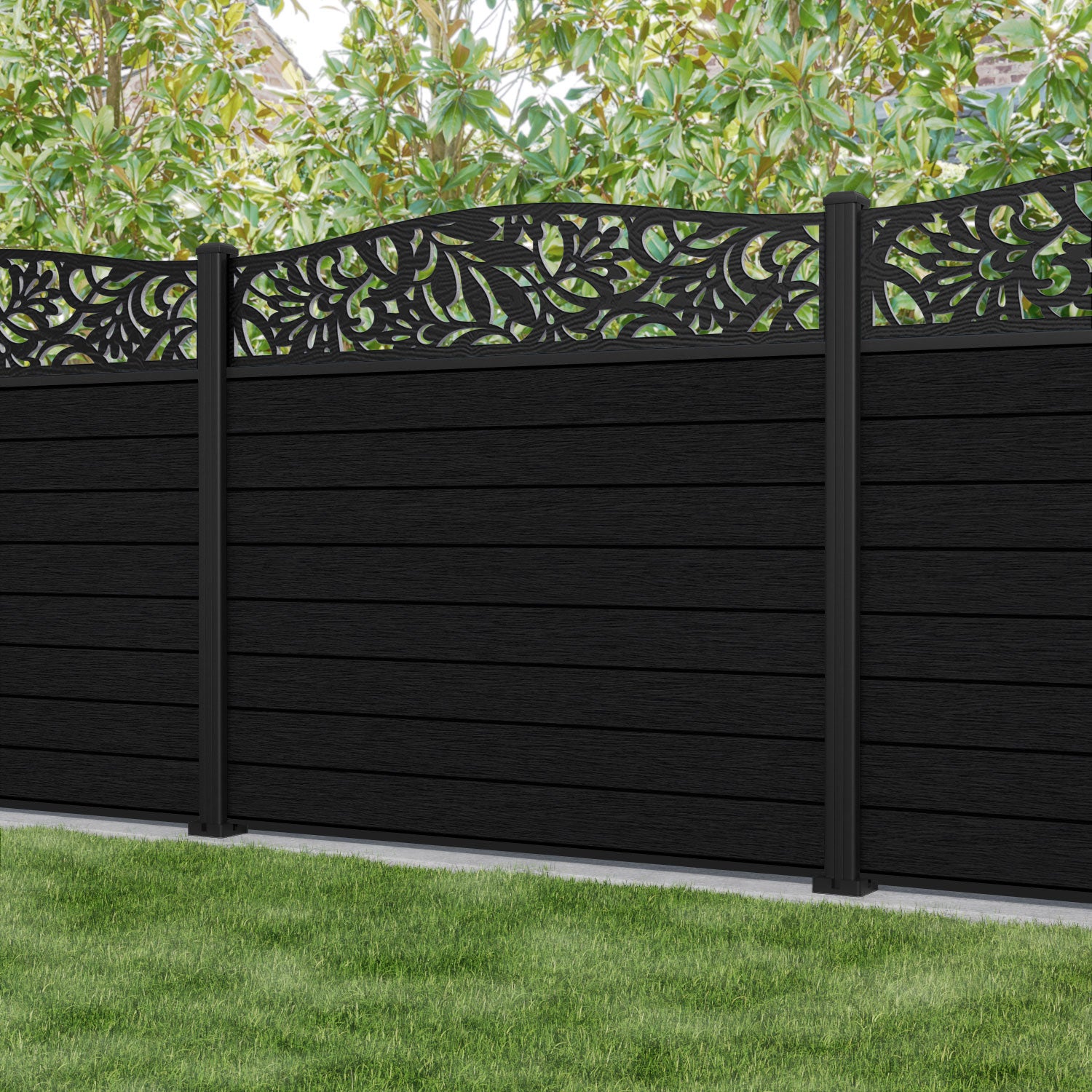 Fusion Heritage Curved Top Fence Panel - Black - with our aluminium posts