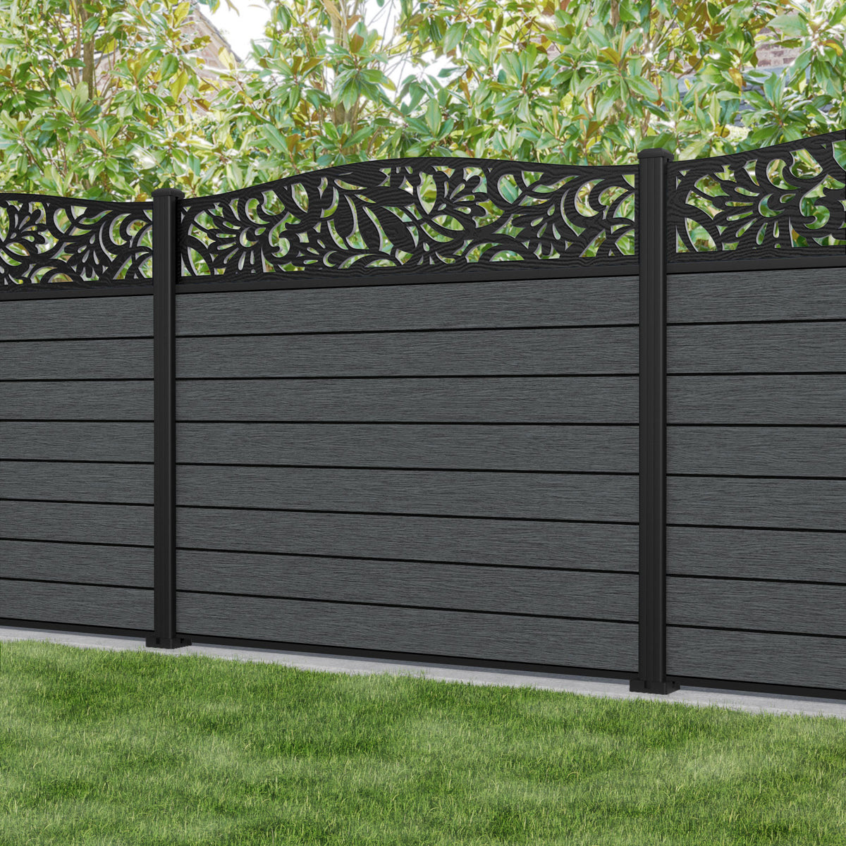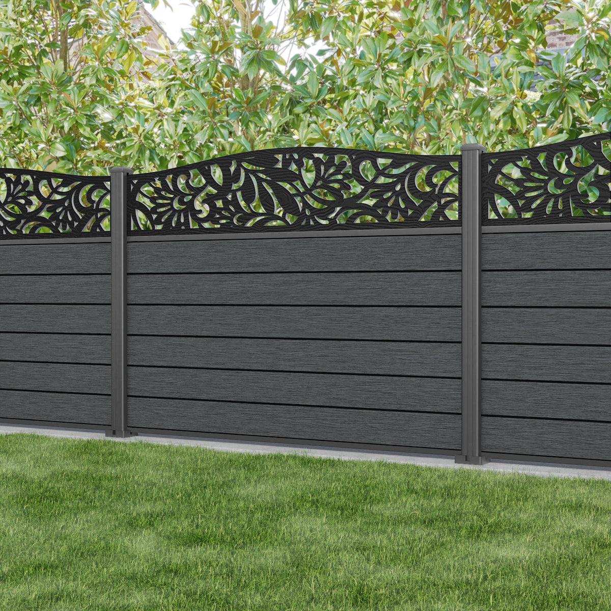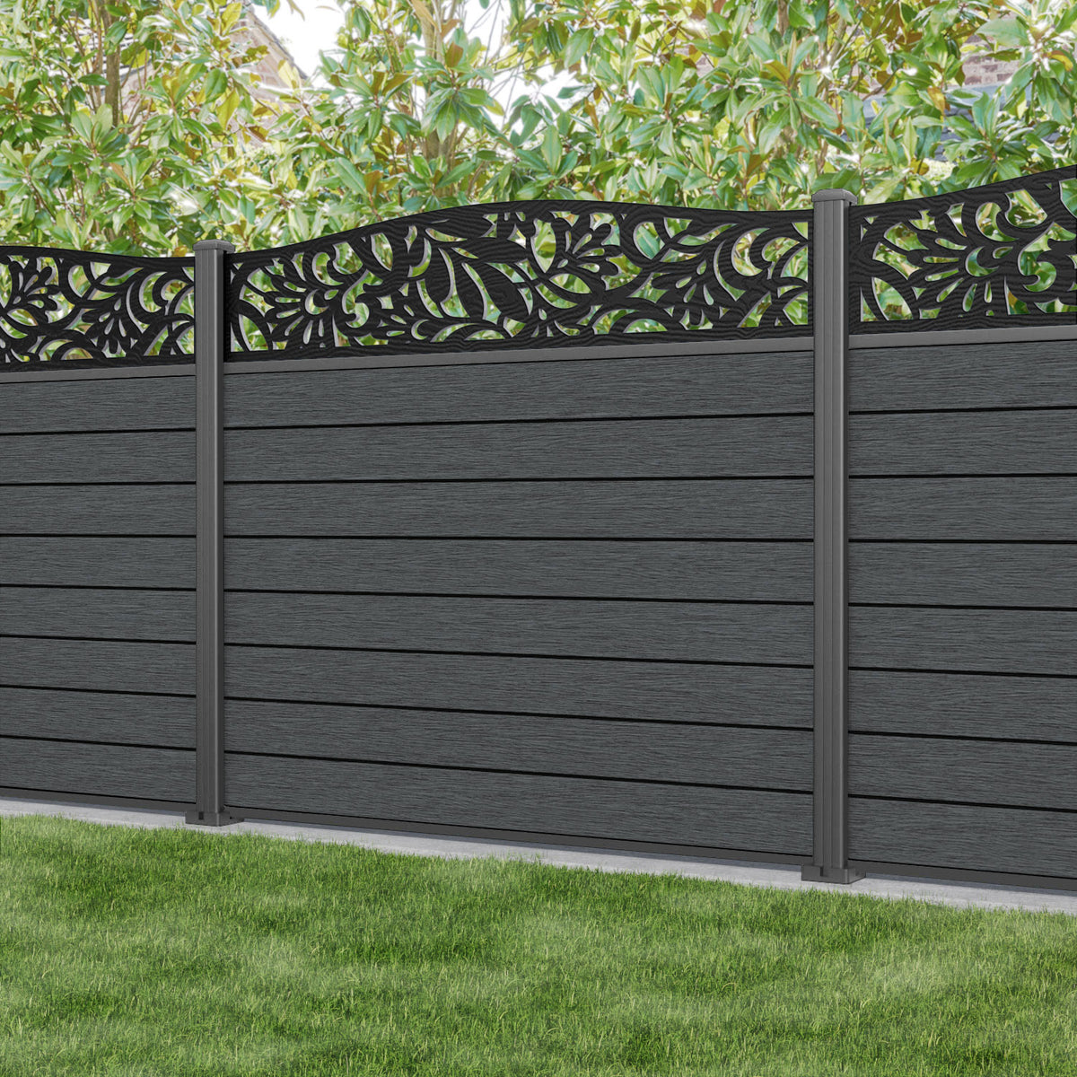 Fusion Heritage Curved Top Fence Panel Dark Grey - with our aluminium posts