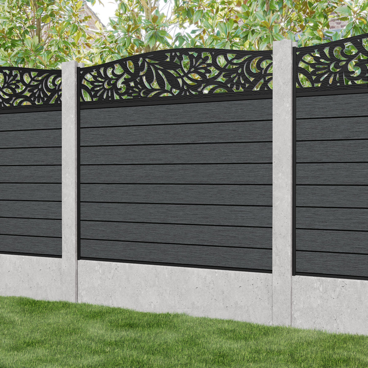 Fusion Heritage Curved Top Fence Panel Dark Grey - for existing concrete posts