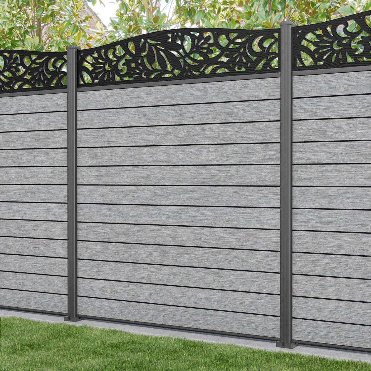 Fusion Heritage Curved Top Fence Panel Light Grey - with our aluminium posts