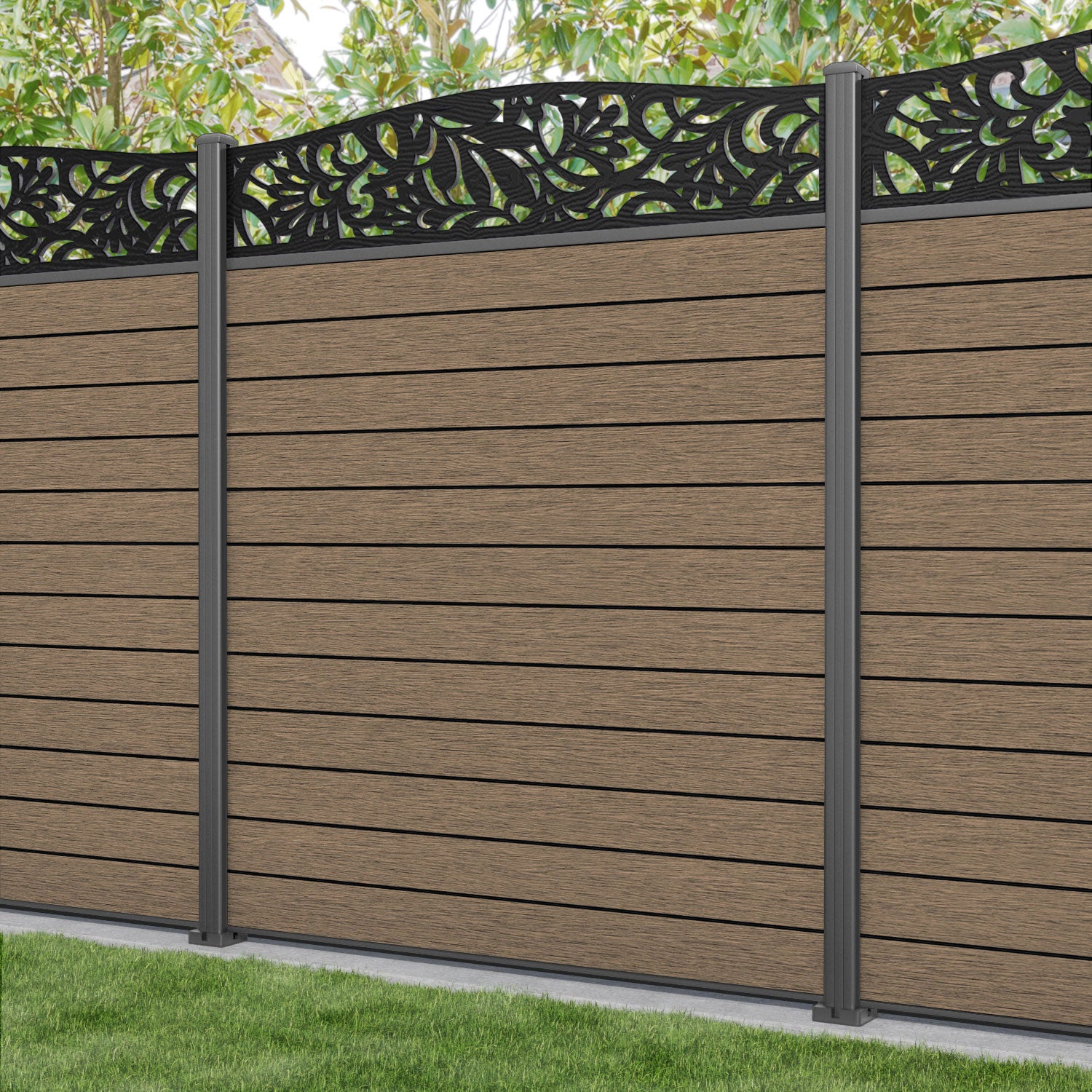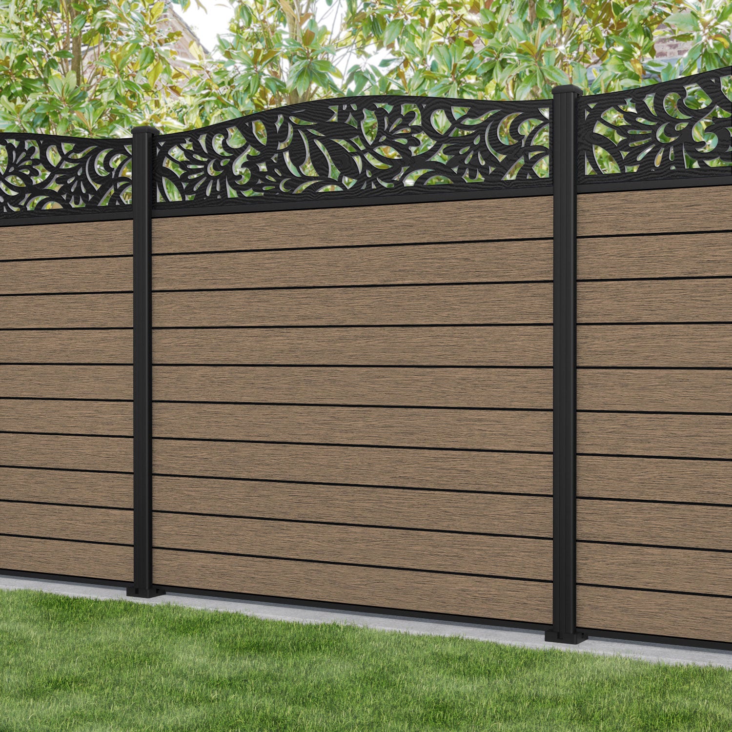 Fusion Heritage Curved Top Fence Panel Teak - with our aluminium posts