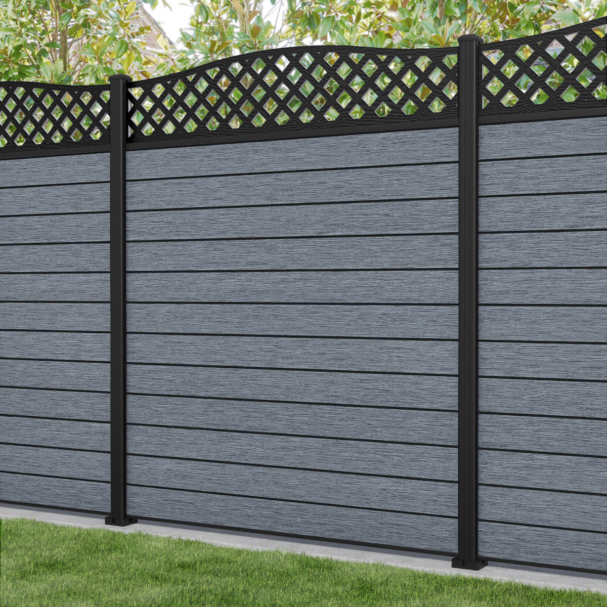 Fusion High Wave Curved Top Fence Panel Anthracite - with our aluminium posts