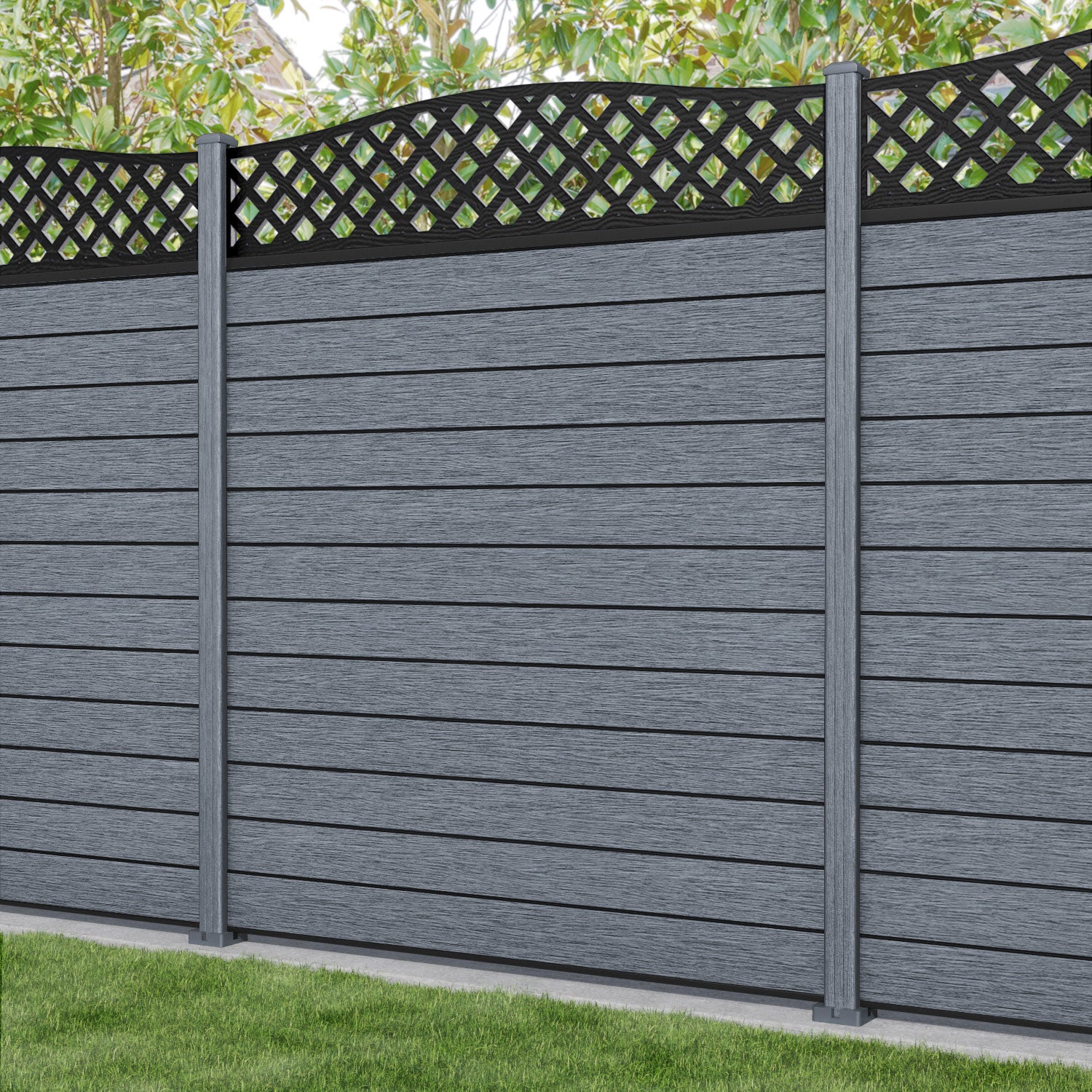 Fusion High Wave Curved Top Fence Panel Anthracite - with our composite posts