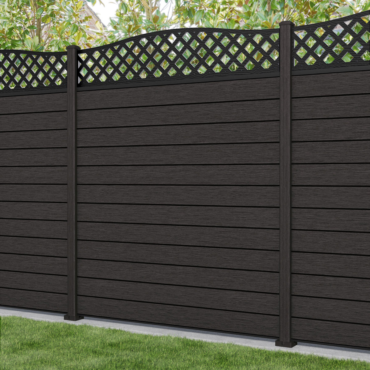 Fusion High Wave Fence Panel Dark Oak - with our composite posts