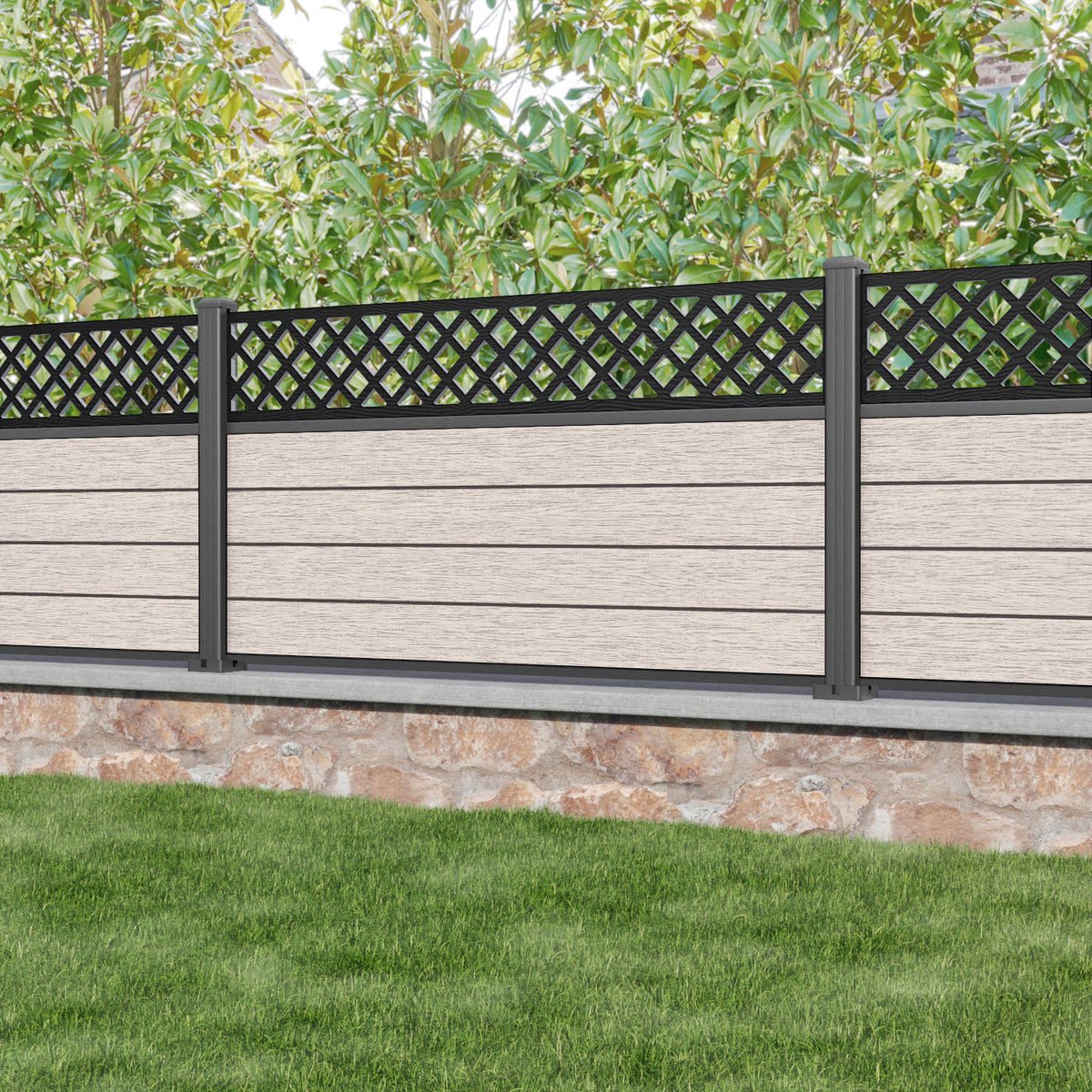 Fusion Hive Fence Panel Mid Stone - with our aluminium posts