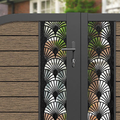 Fusion Laurel Curved Top Driveway Gate Teak - Middle Screen