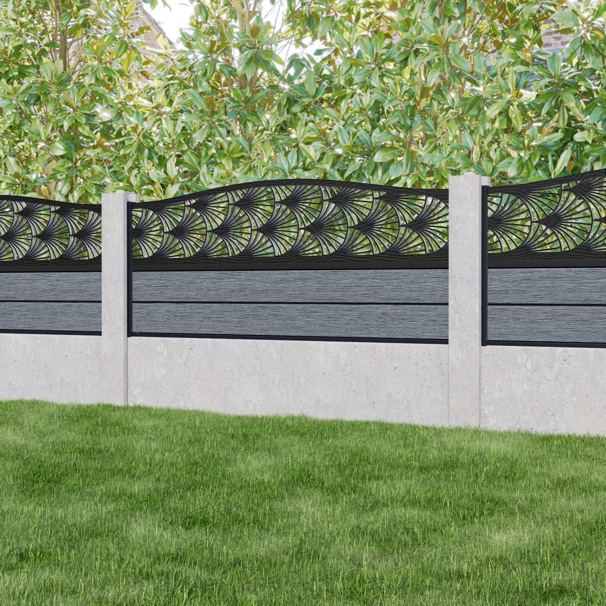 Fusion Laurel Curved Top Fence Panel Anthracite - for existing concrete posts
