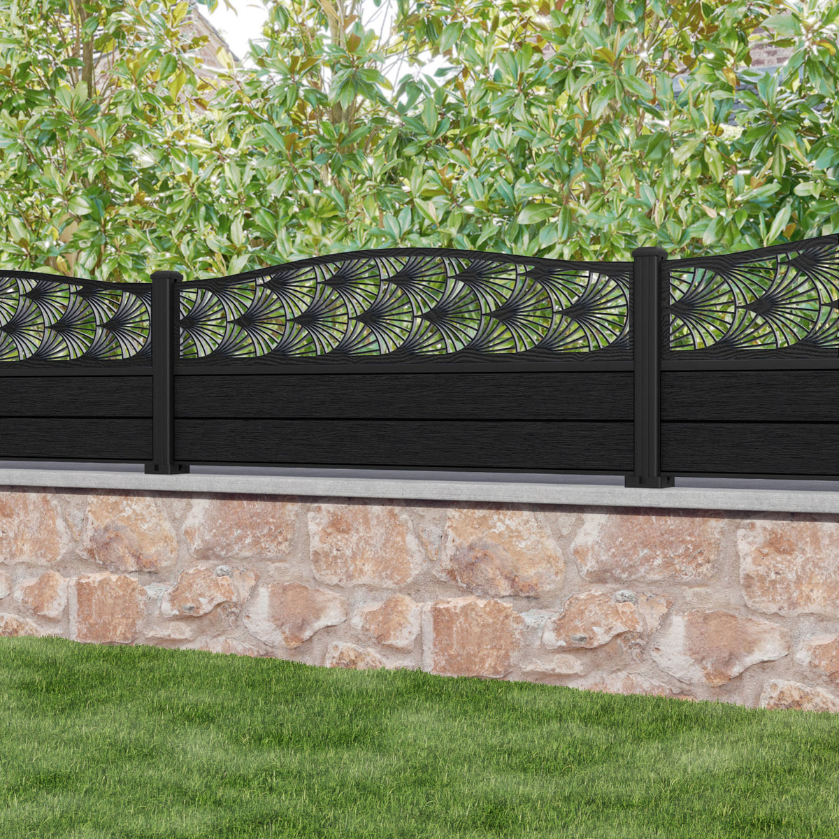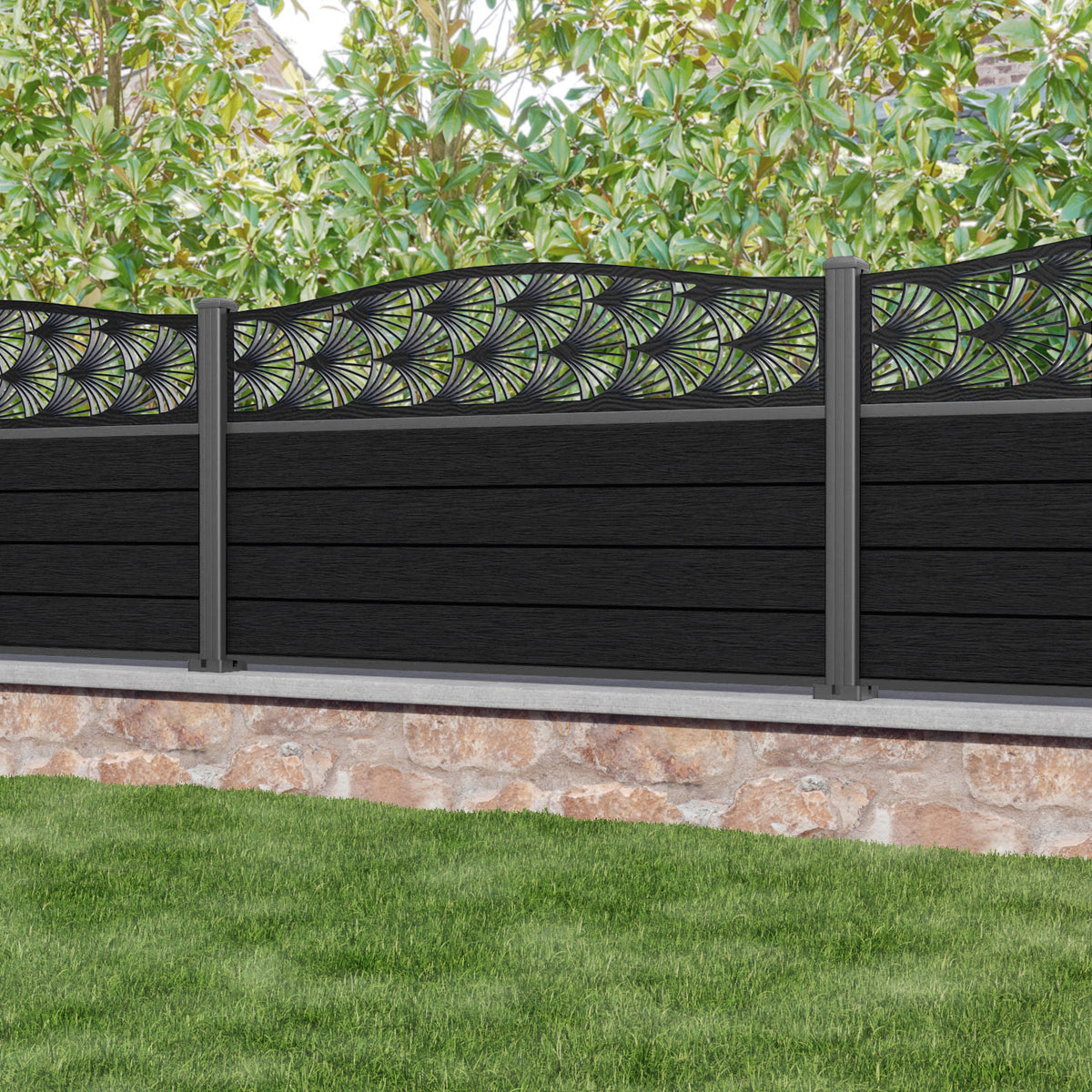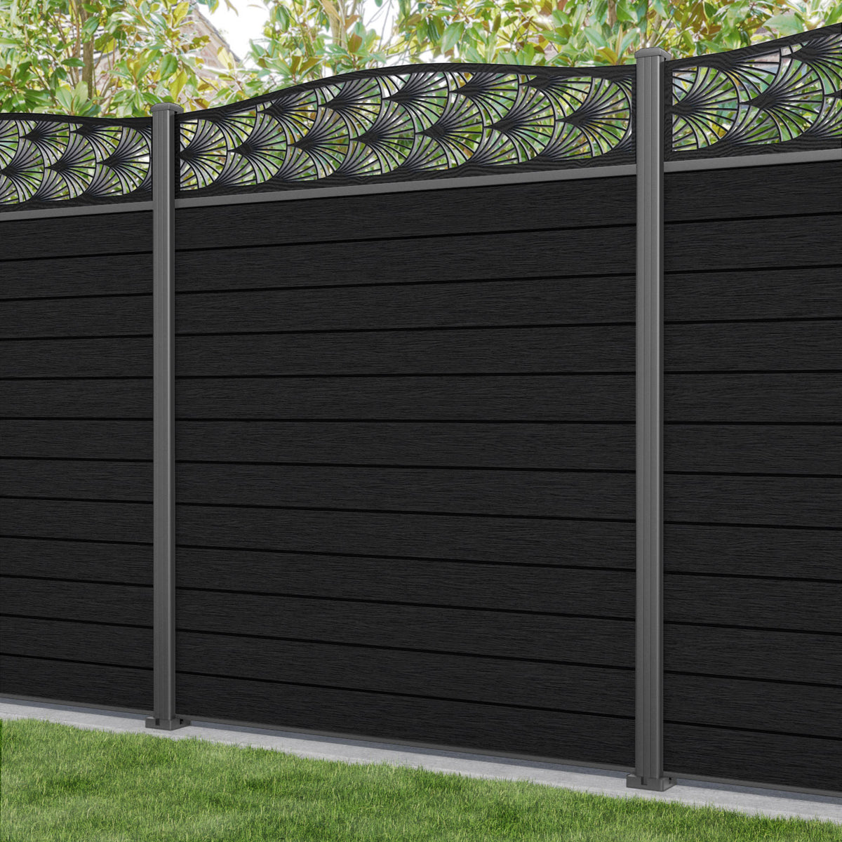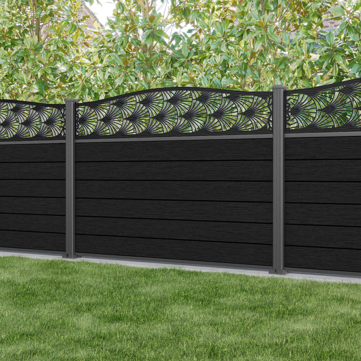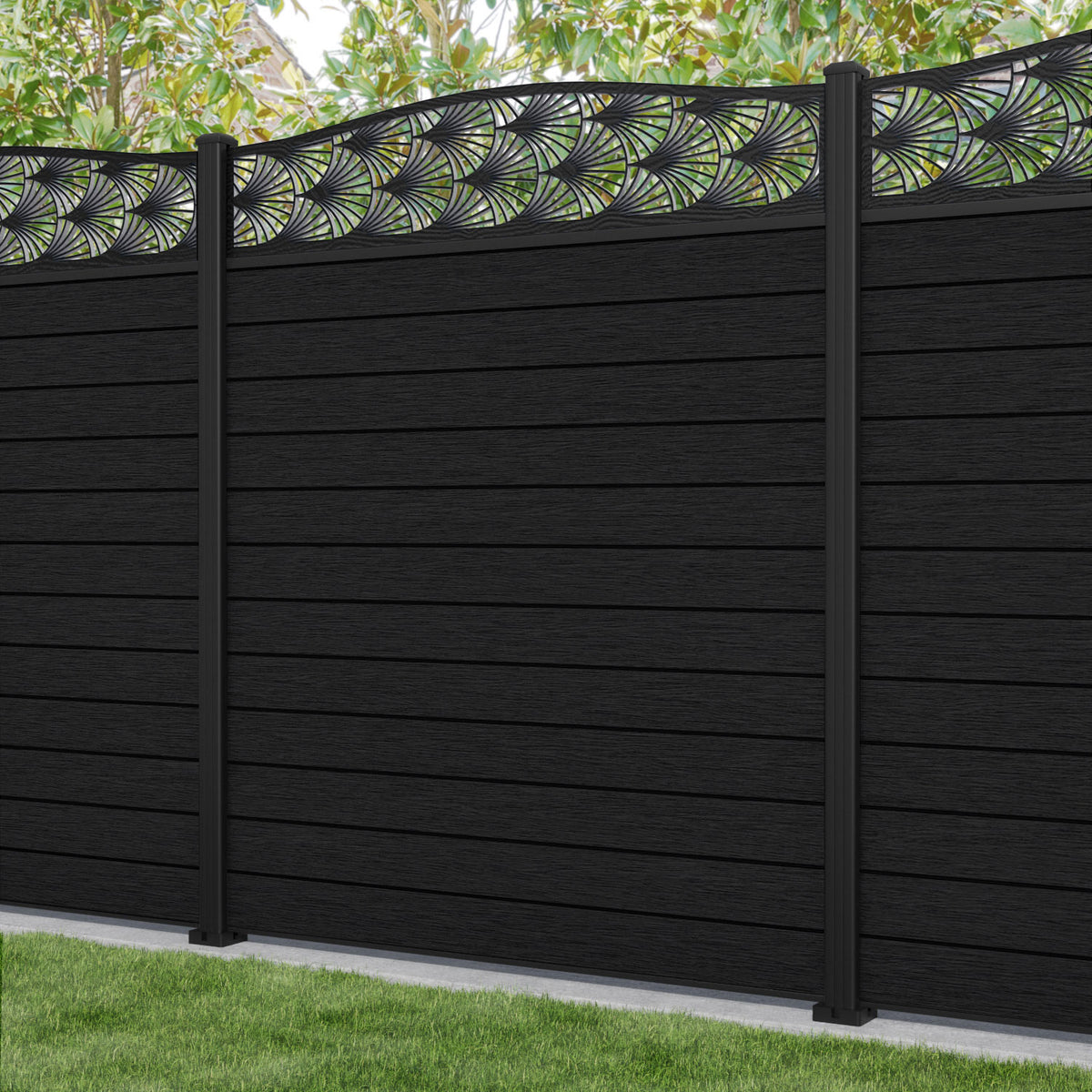 Fusion Laurel Curved Top Fence Panel Black - with our aluminium posts