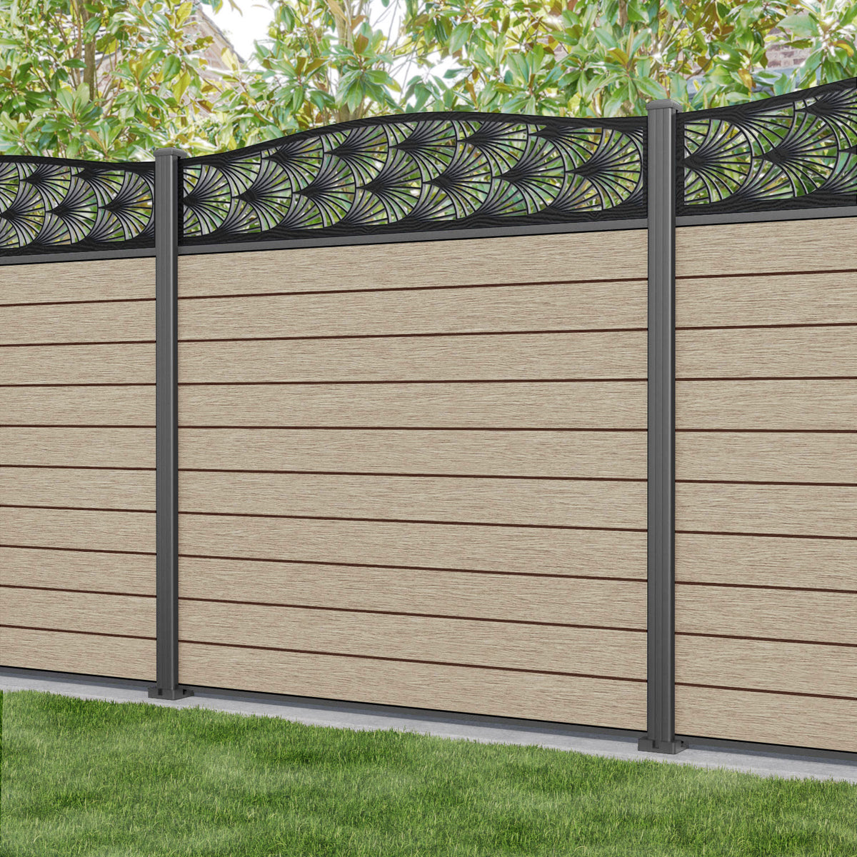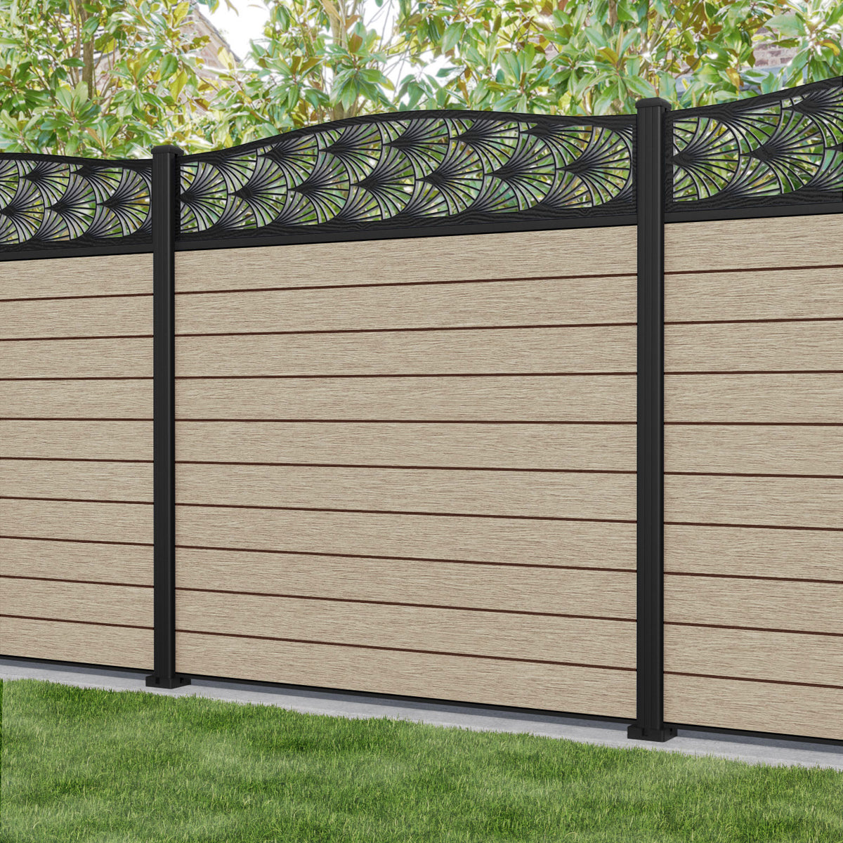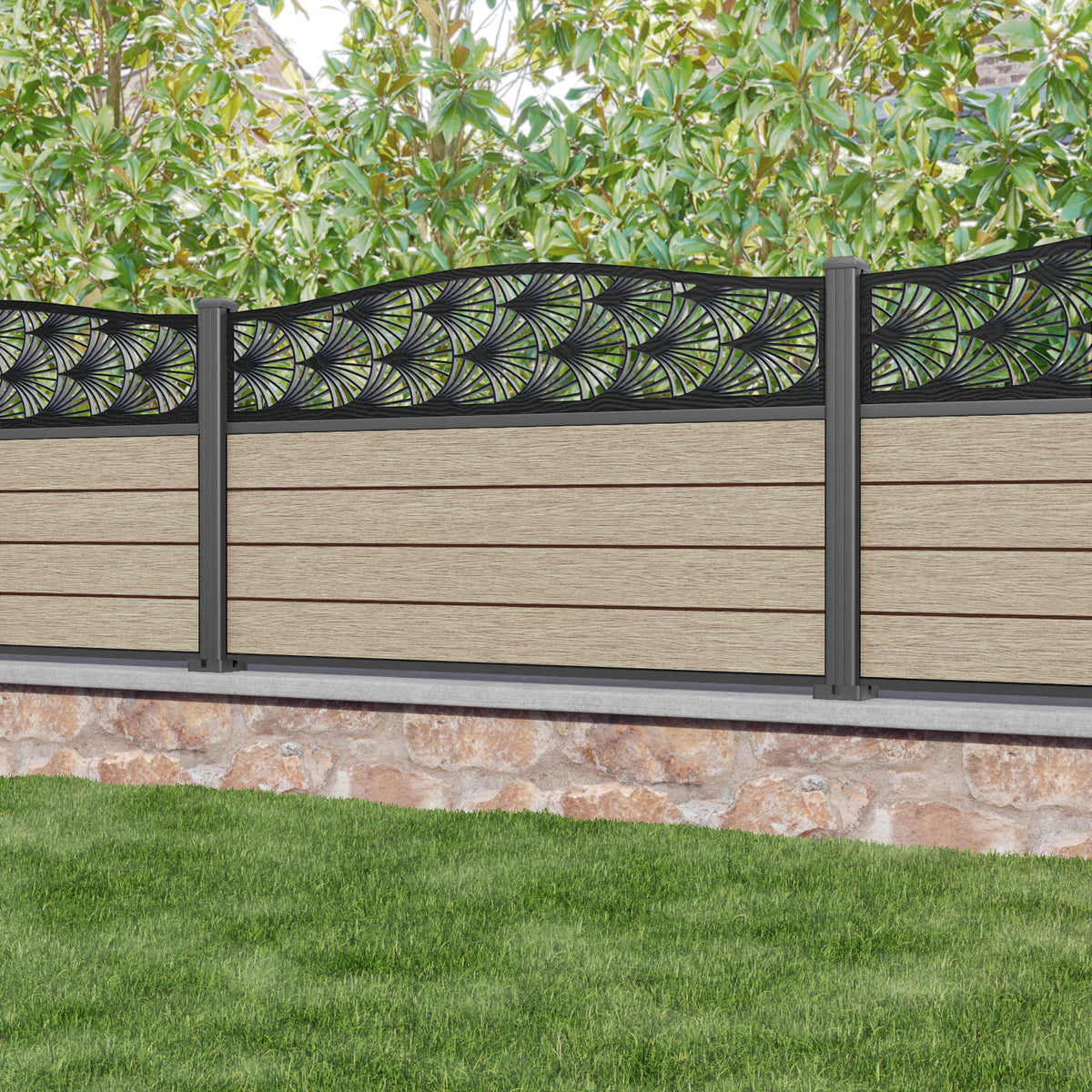 Fusion Laurel Curved Top Fence Panel Light Oak - with our aluminium posts