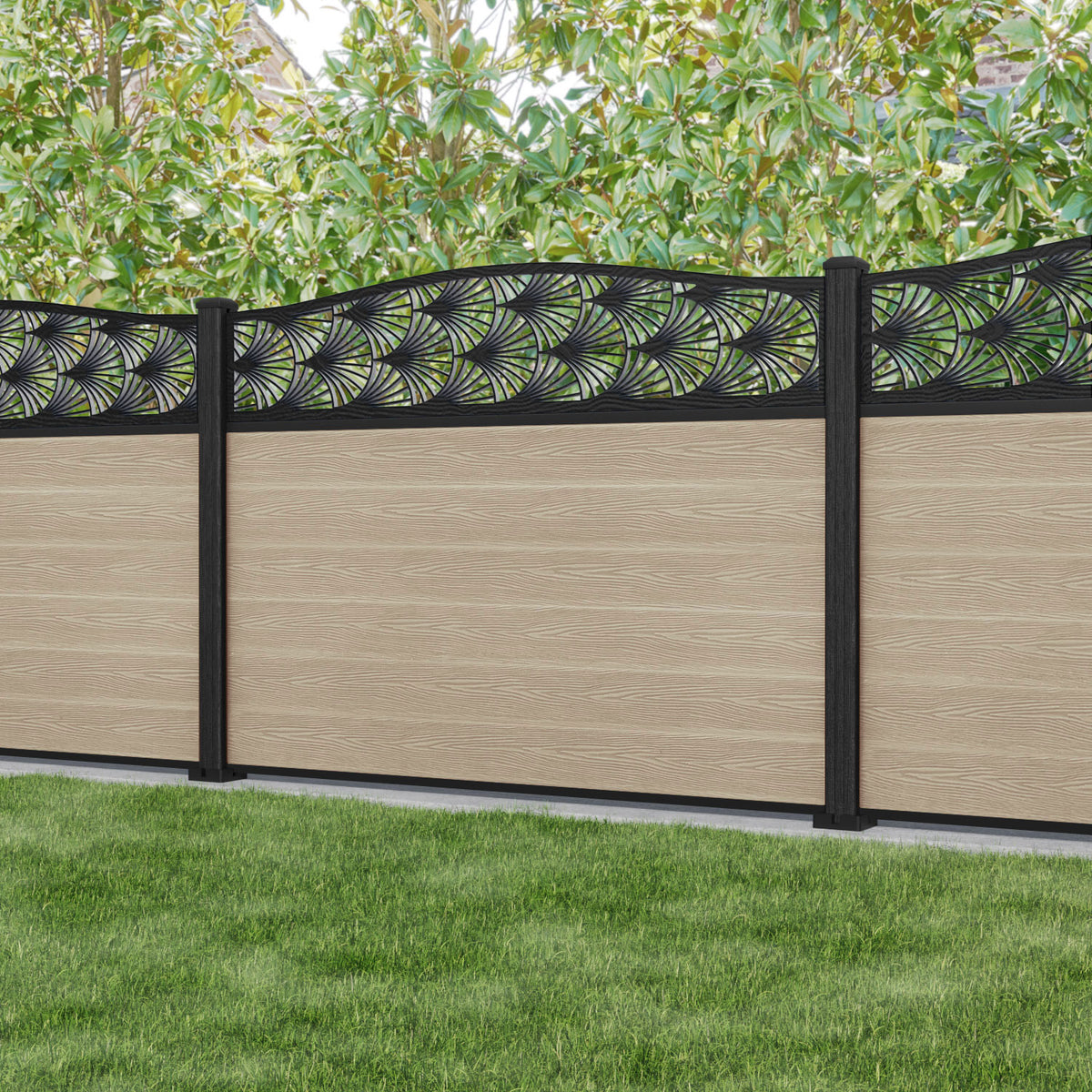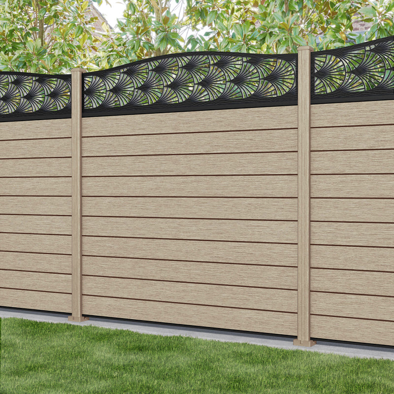 Fusion Laurel Curved Top Fence Panel Light Oak - with our composite posts