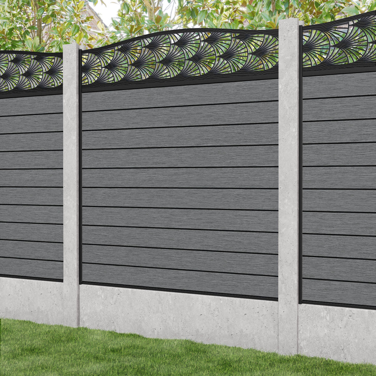 Fusion Laurel Curved Top Fence Panel Mid Grey - for existing concrete posts