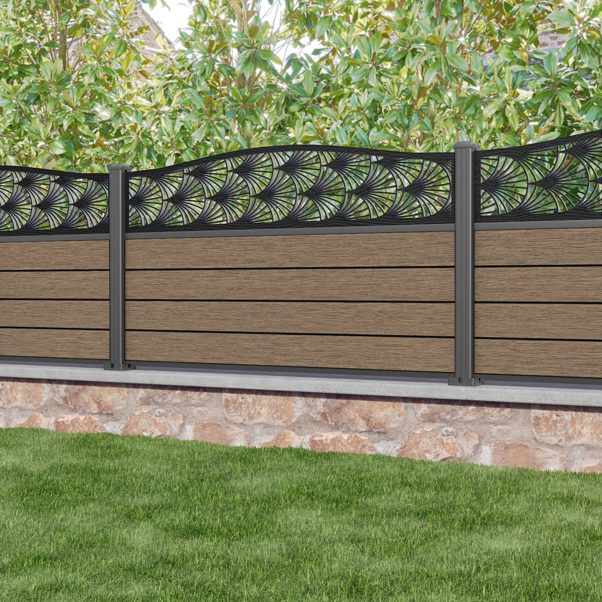 Fusion Laurel Curved Top Fence Panel Teak - with our aluminium posts