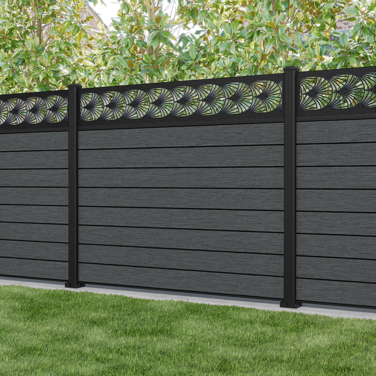Fusion Laurel Fence Panel Dark Grey - with our aluminium posts