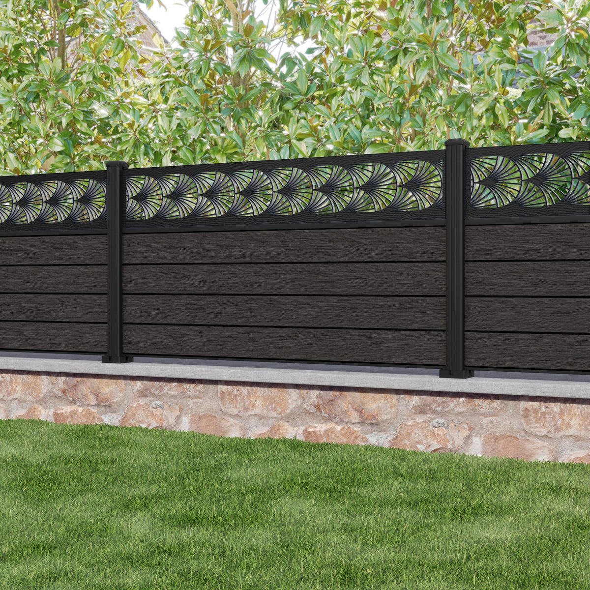 Fusion Laurel Fence Panel Dark Oak - with our aluminium posts