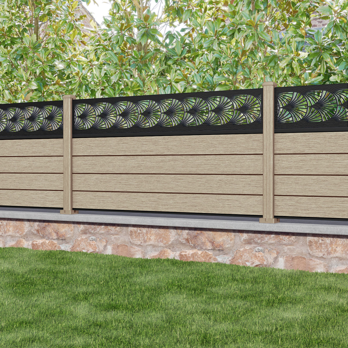 Fusion Laurel Fence Panel Light Oak - with our composite posts