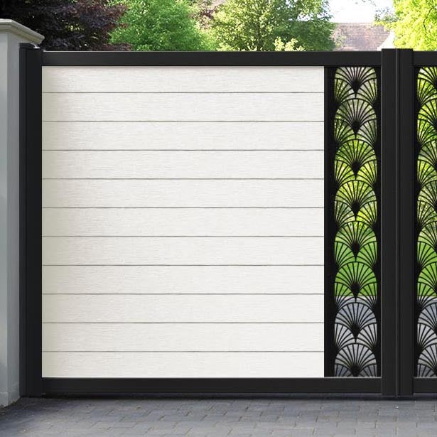 Fusion Laurel Straight Top Driveway Gate Light Stone - Middle Screen