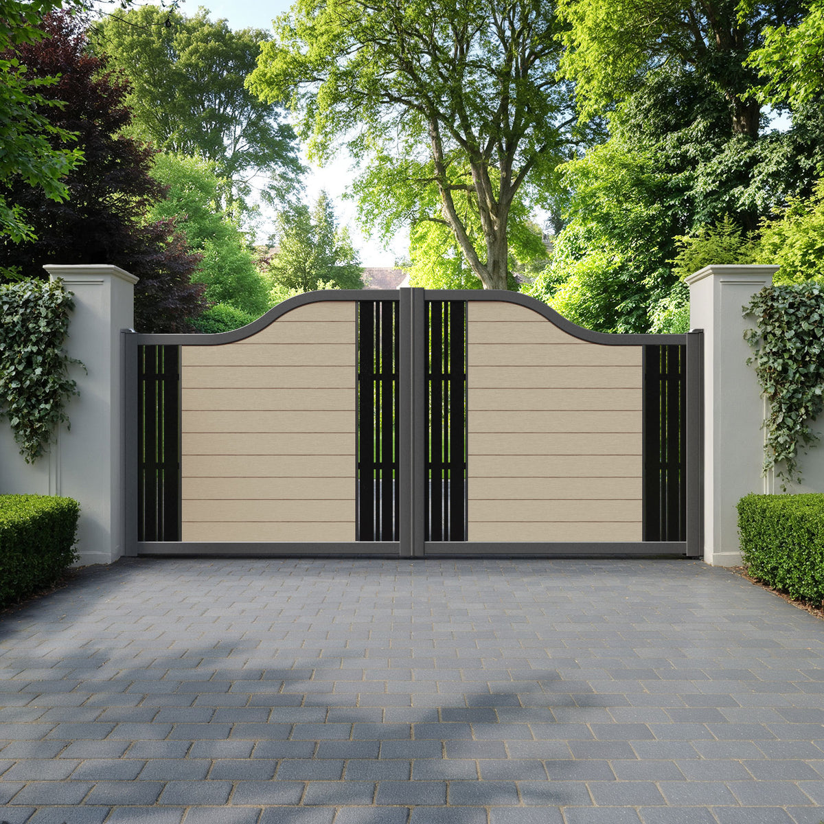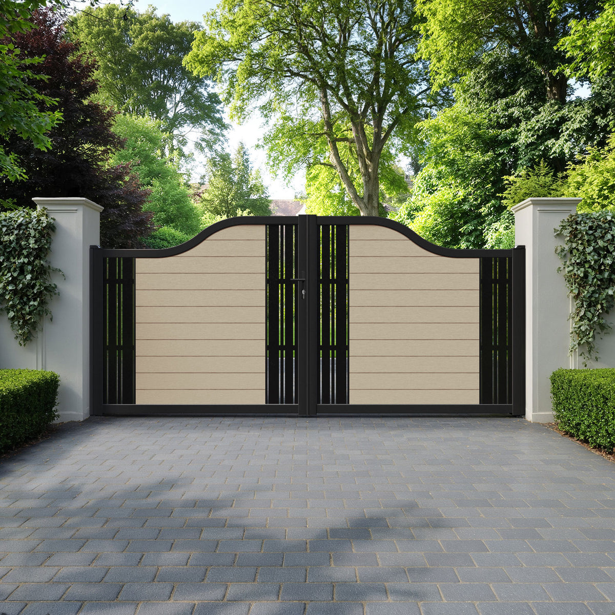 Fusion Linea Curved Top Driveway Gate Light Oak - Middle & End Screen