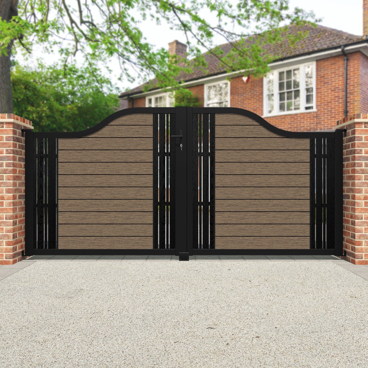 Fusion Linea Curved Top Driveway Gate Teak - Middle & End Screen
