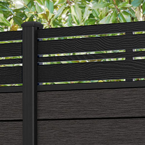 Fusion Linea Fence Panel Dark Oak - with our aluminium posts