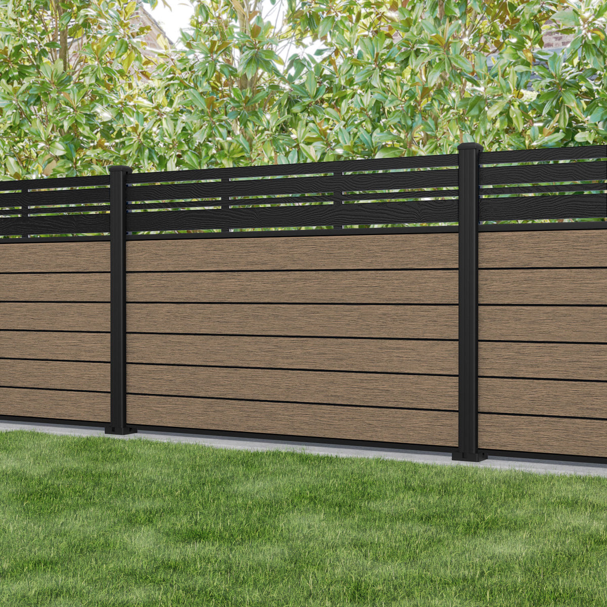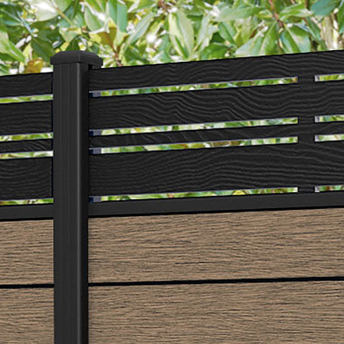 Fusion Linea Fence Panel Teak - with our aluminium posts