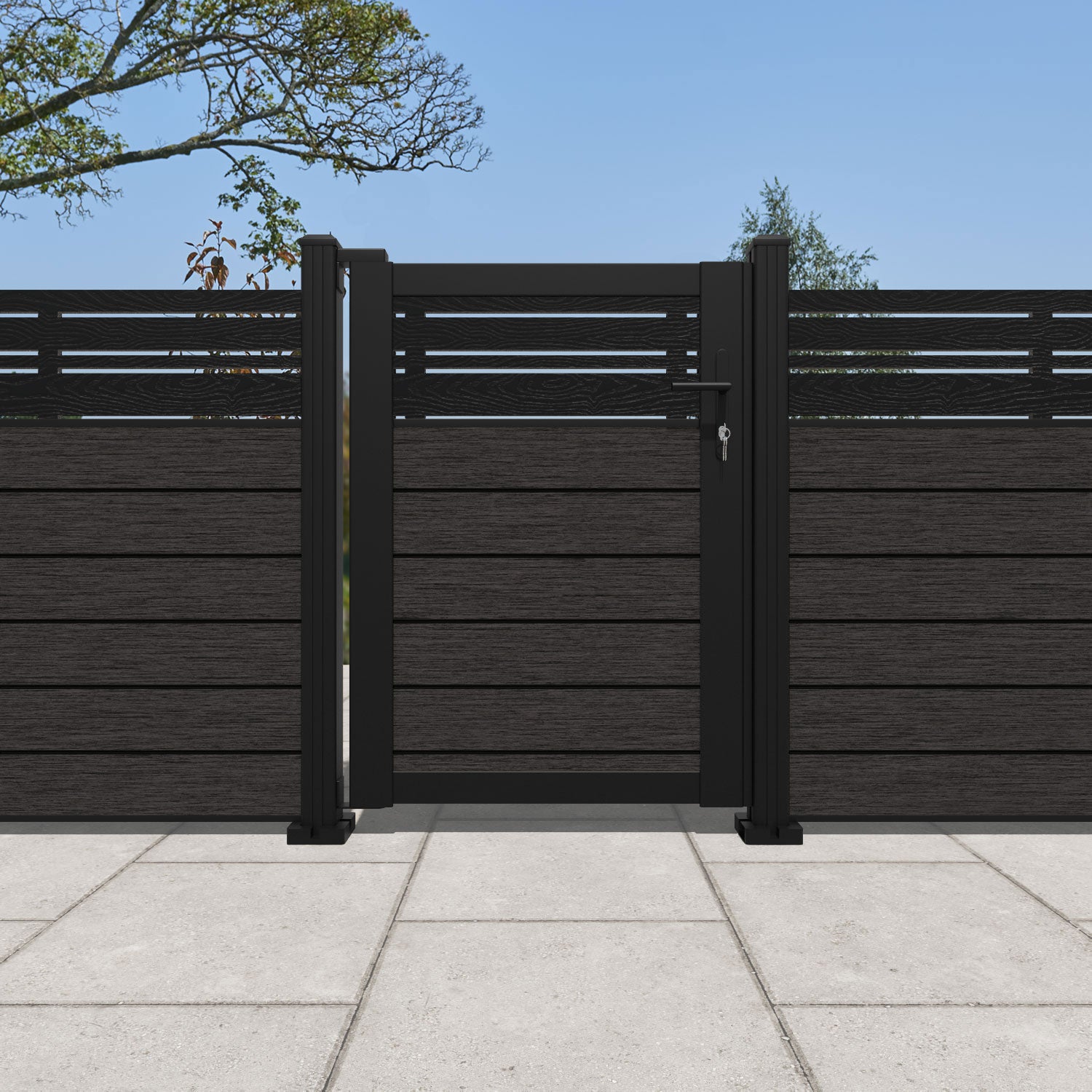 Pair your gate with our eco-friendly composite or aluminium slats for a seamless match to our fencing collections, ensuring a stylish and cohesive look.