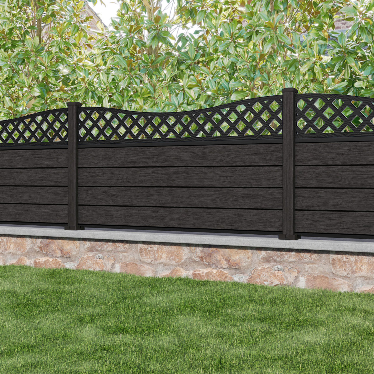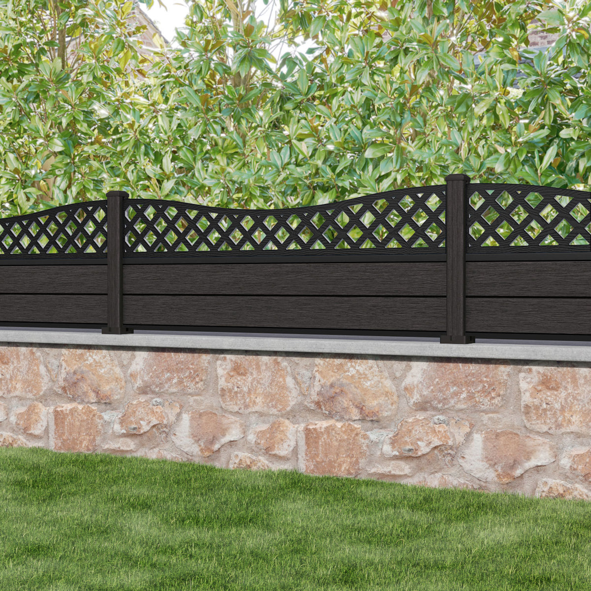 Fusion Low Wave Fence Panel Dark Oak - with our composite posts