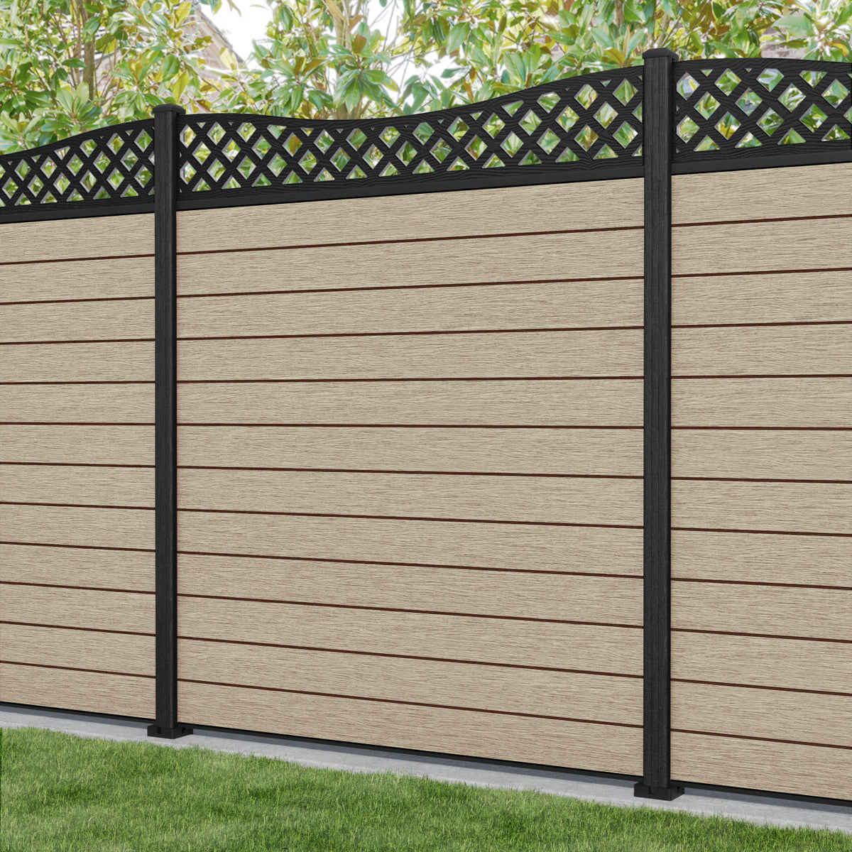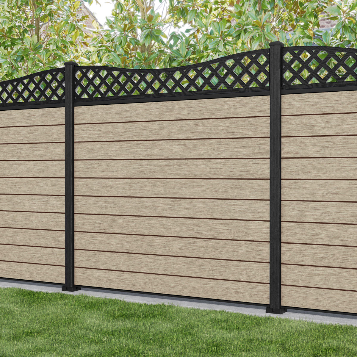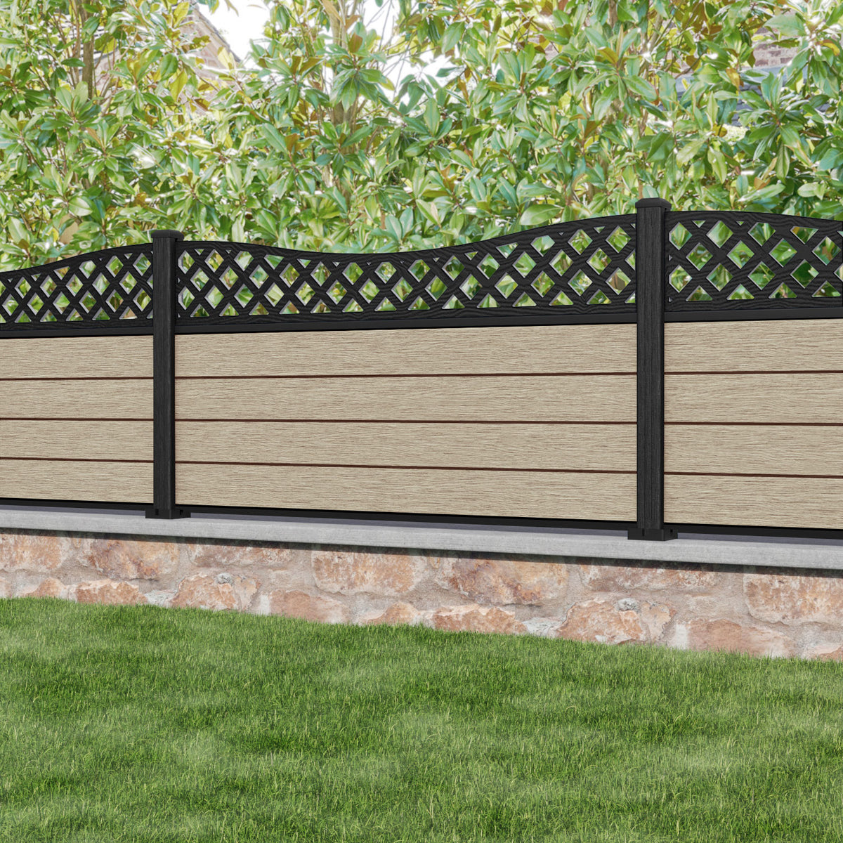 Fusion Low Wave Fence Panel Light Oak - with our composite posts