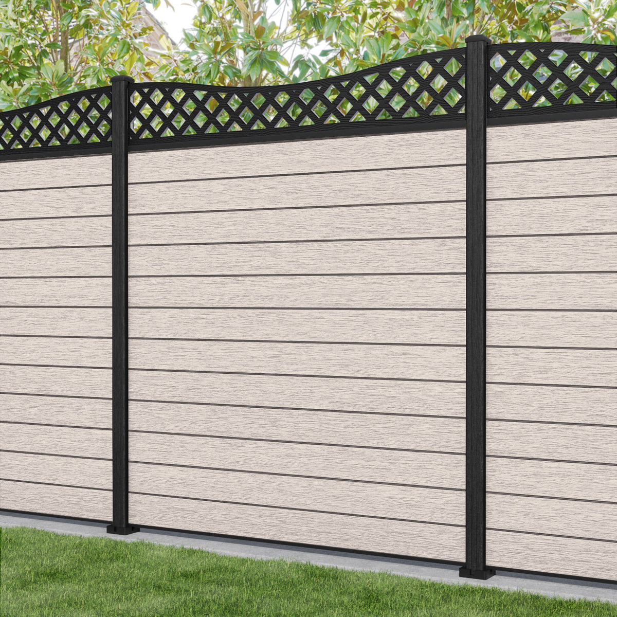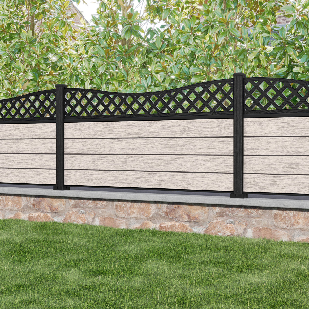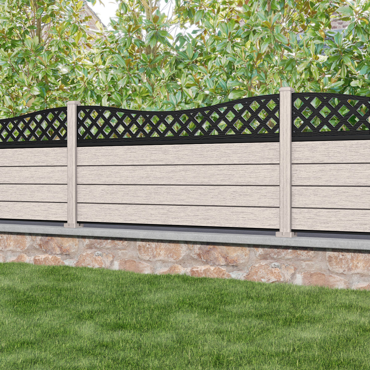 Fusion Low Wave Curved Top Fence Panel Mid Stone - with our composite posts