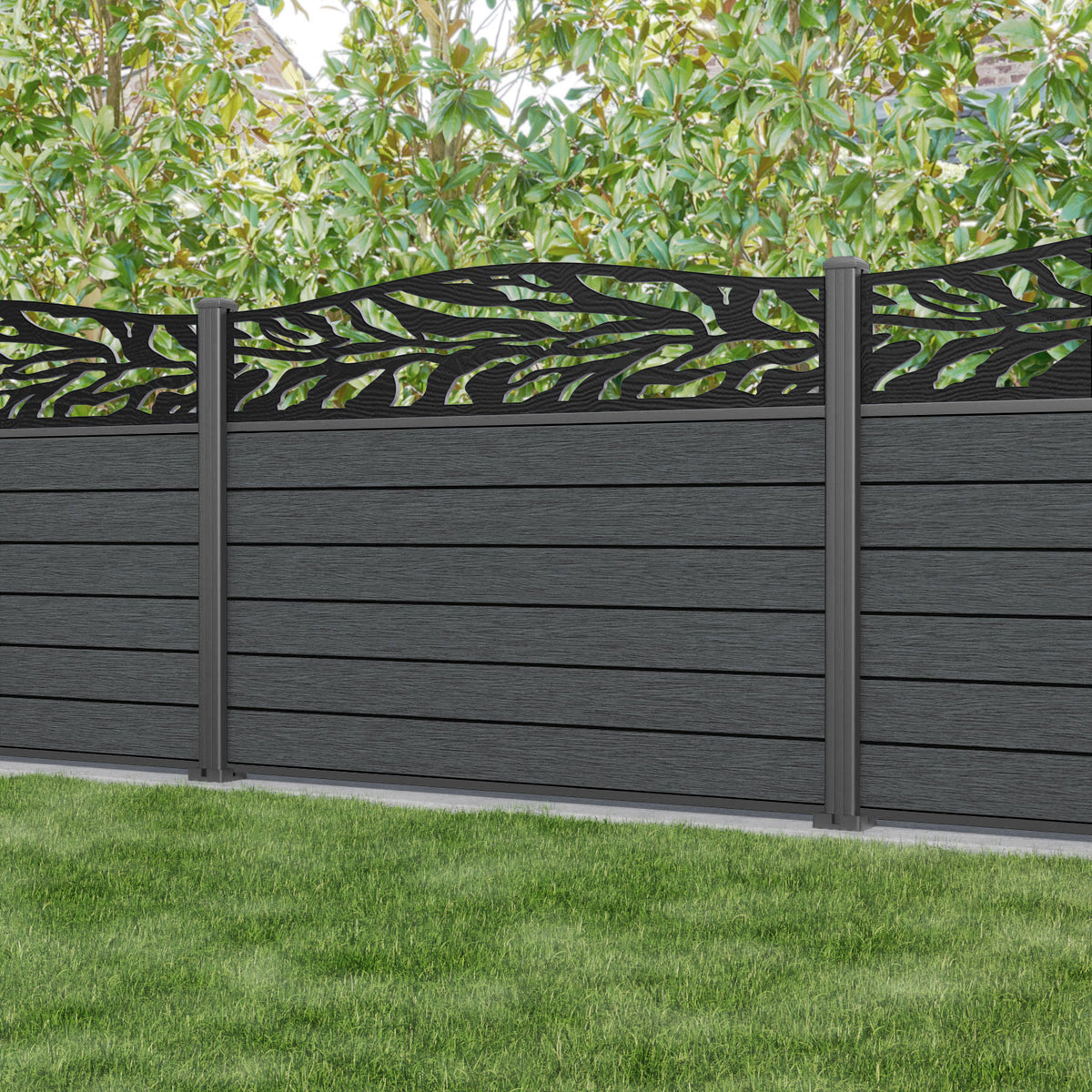 Fusion Malawi Curved Top Fence Panel Dark Oak - with our aluminium posts