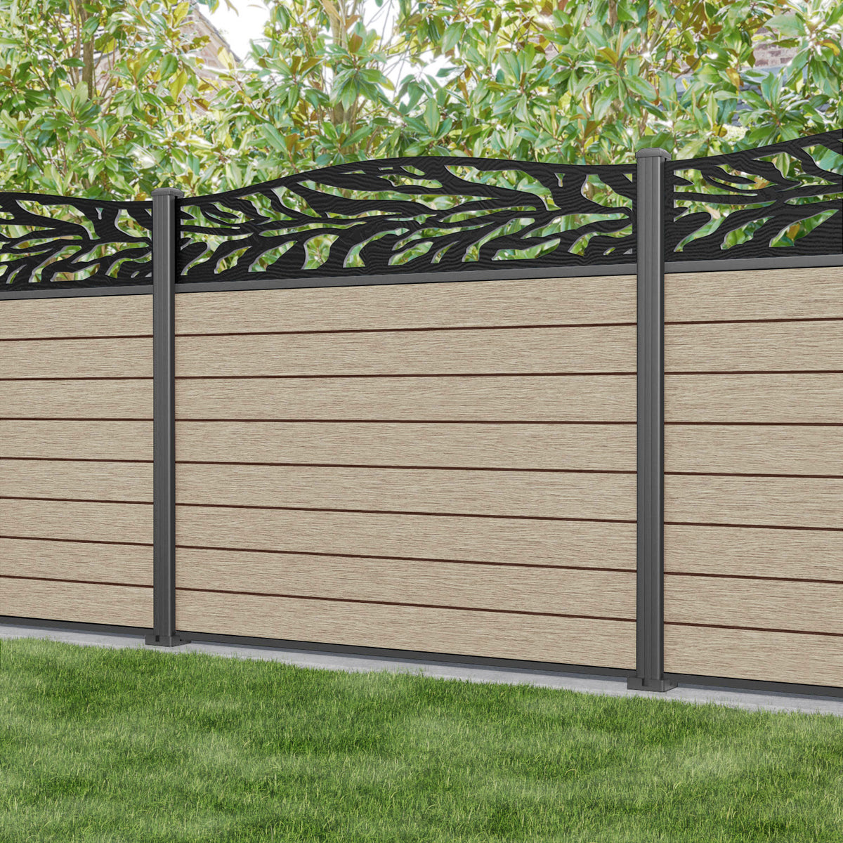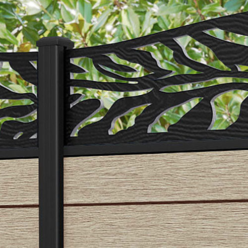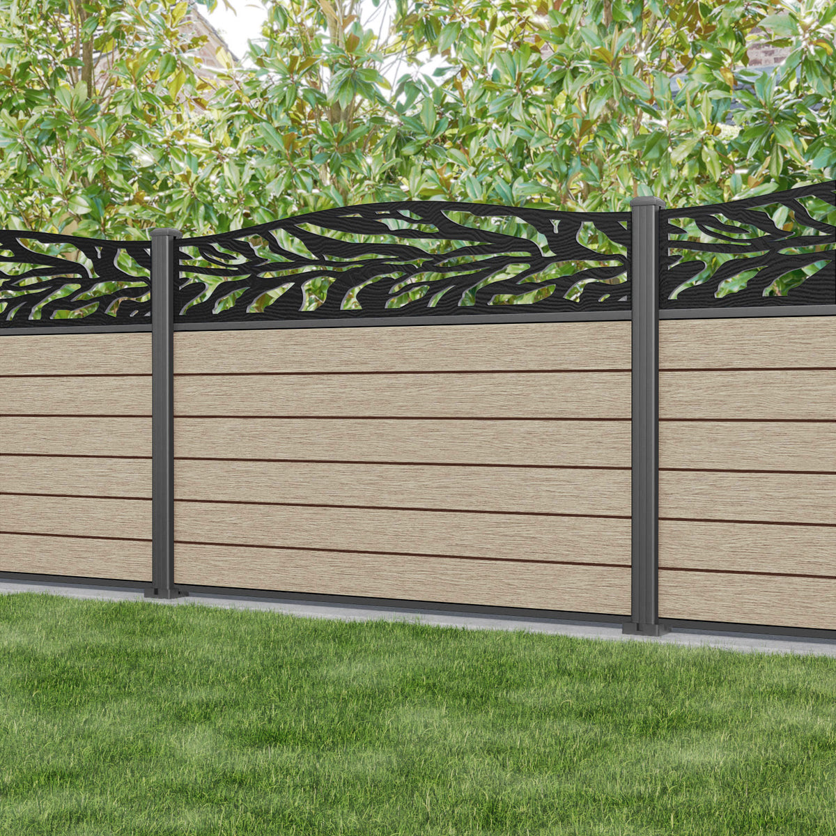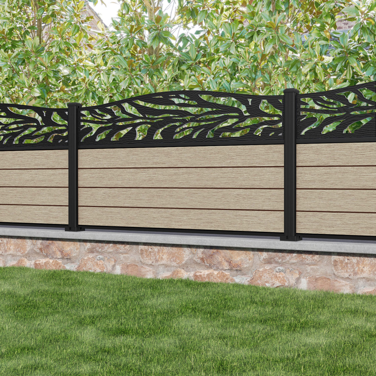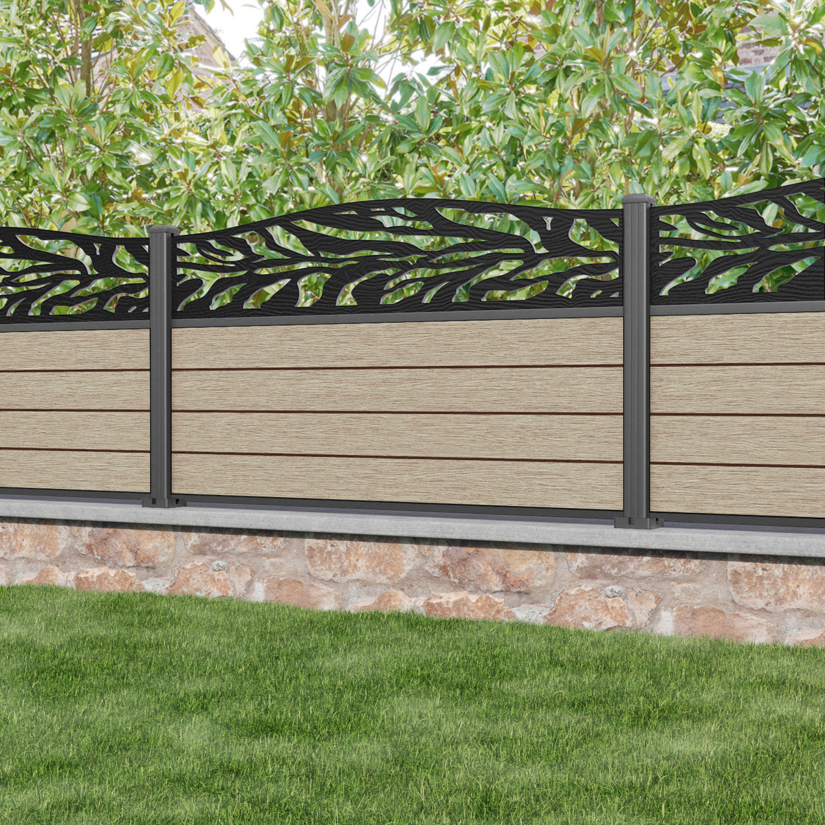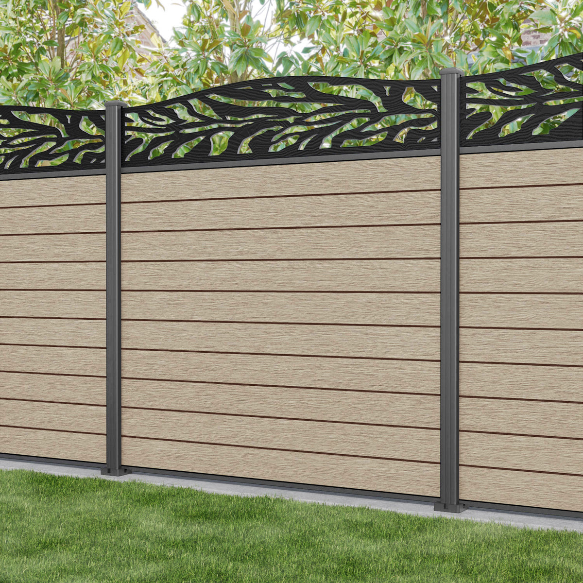 Fusion Malawi Curved Top Fence Panel Light Oak - with our aluminium posts