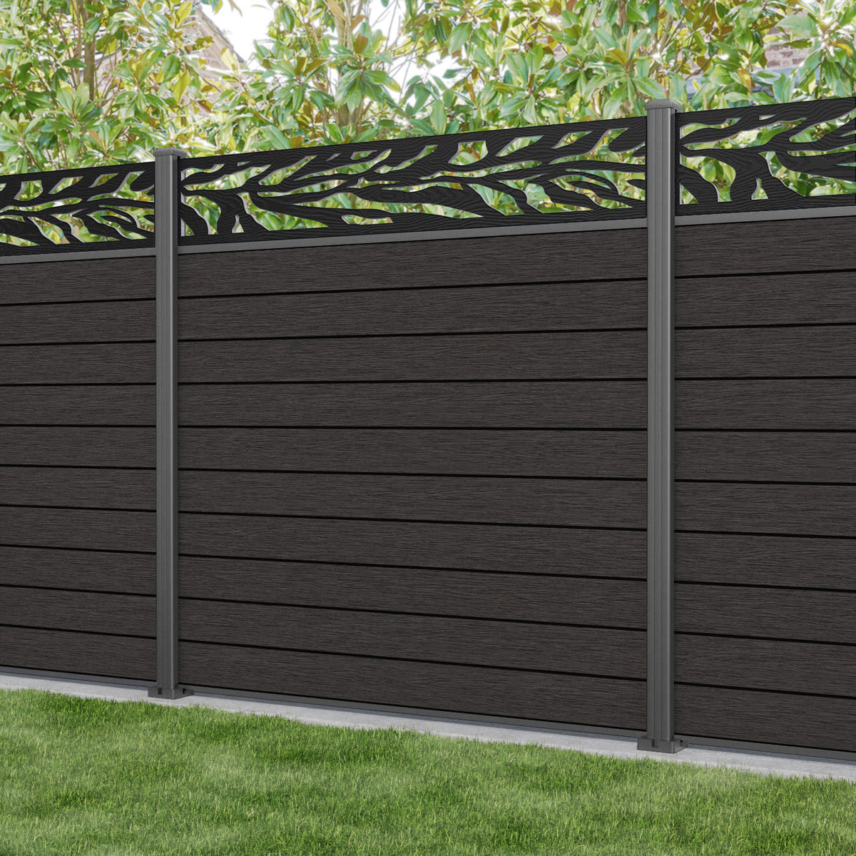 Fusion Malawi Fence Panel Dark Oak - with our aluminium posts