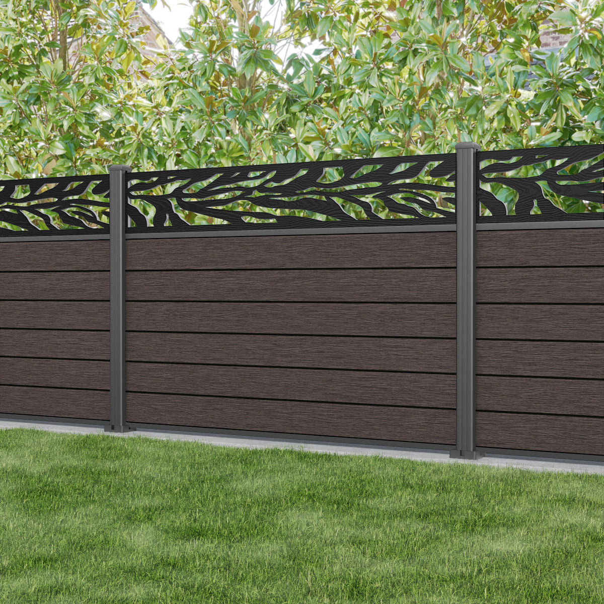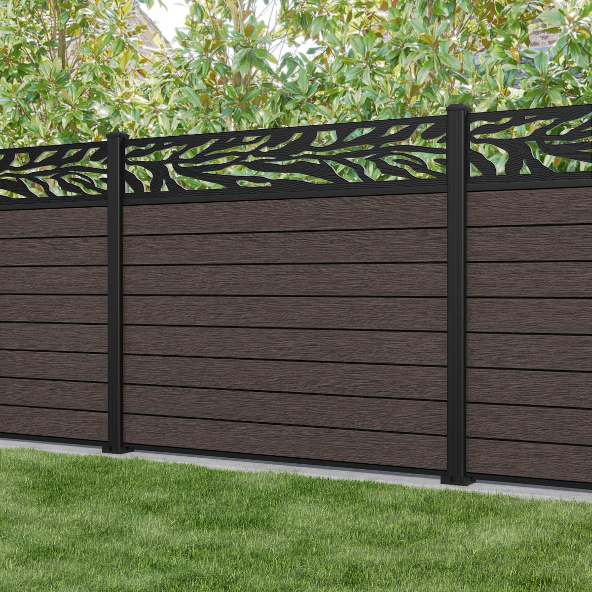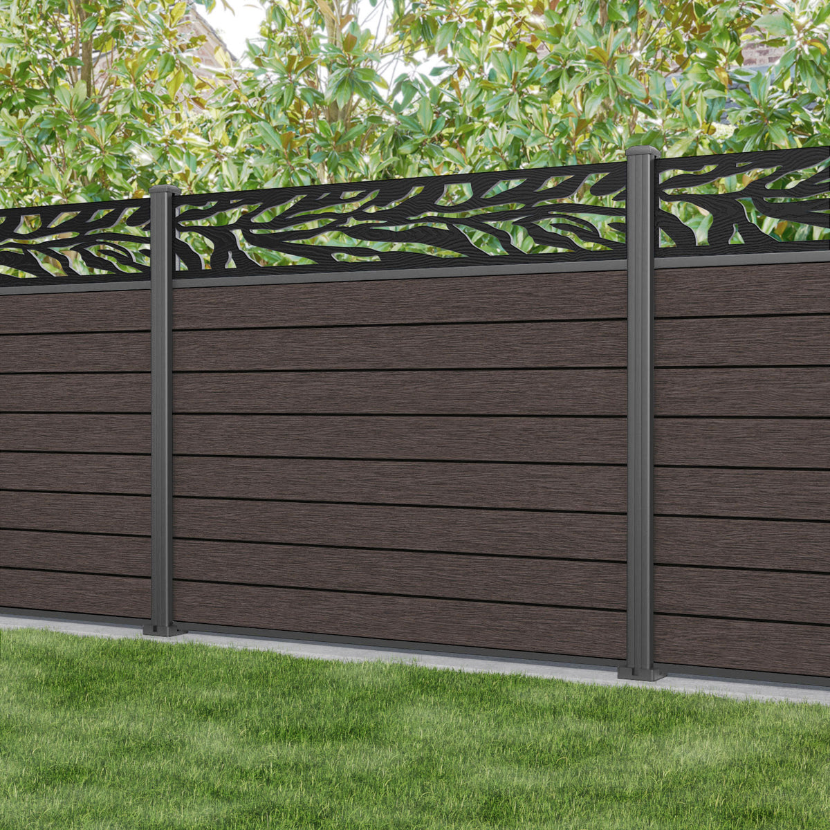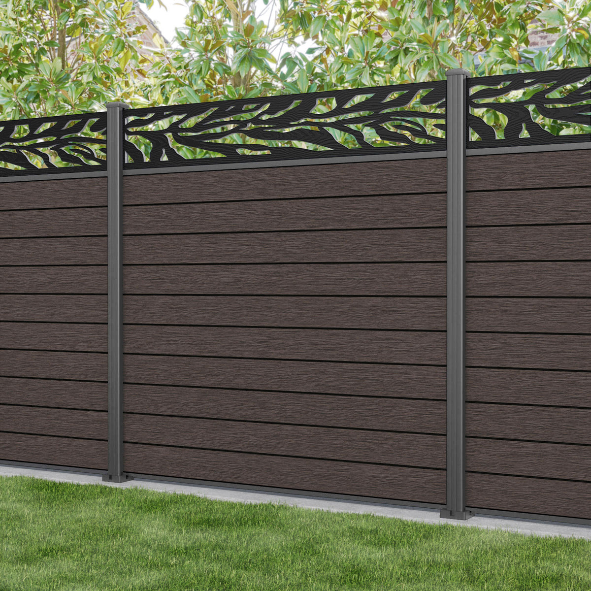 Fusion Malawi Fence Panel Mid Brown - with our aluminium posts
