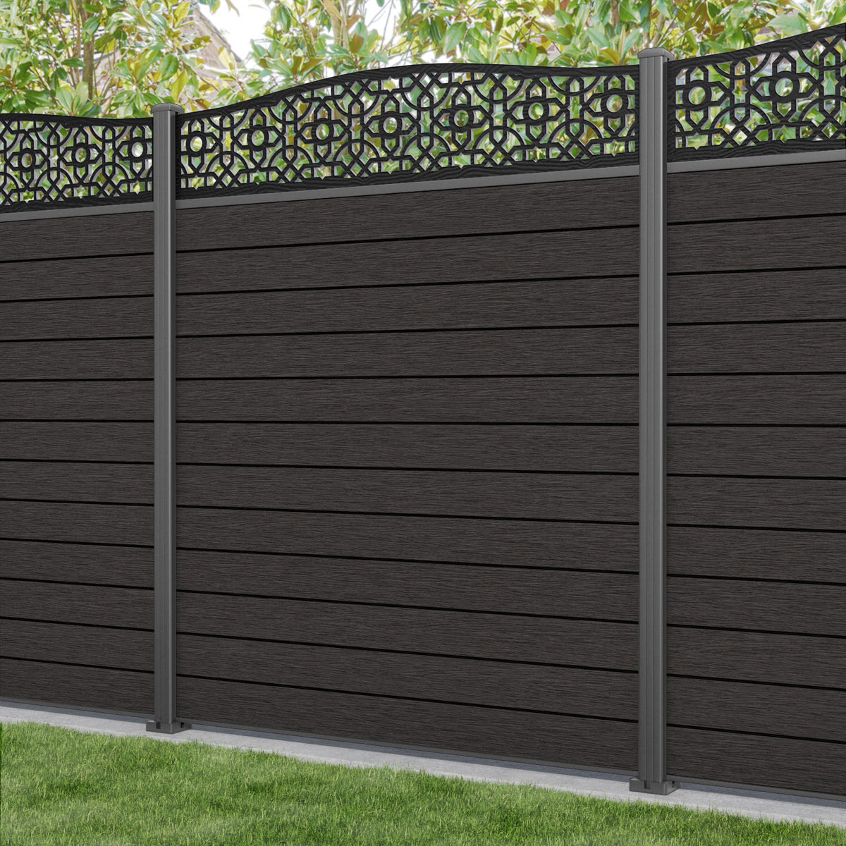 Fusion Nabila Curved Top Fence Panel Dark Oak - with our aluminium posts